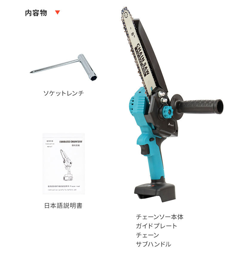 (B) マキタ 充電式 互換 チェーンソー 8インチ ブラシレスモーター 小型 オイル 自動給油 コードレス 電動 のこぎり18V