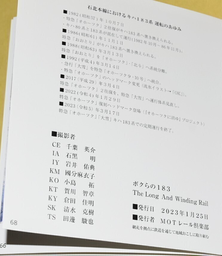 に暮らし、鉄道を愛する者たちが焼きつけた、キハ183系の躍動である」四季折々のオホーツク地域を走るキハ183の躍動を一冊です。