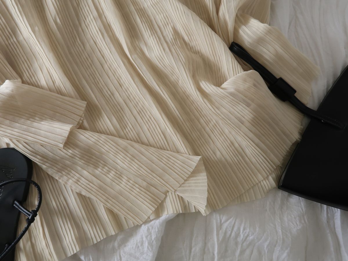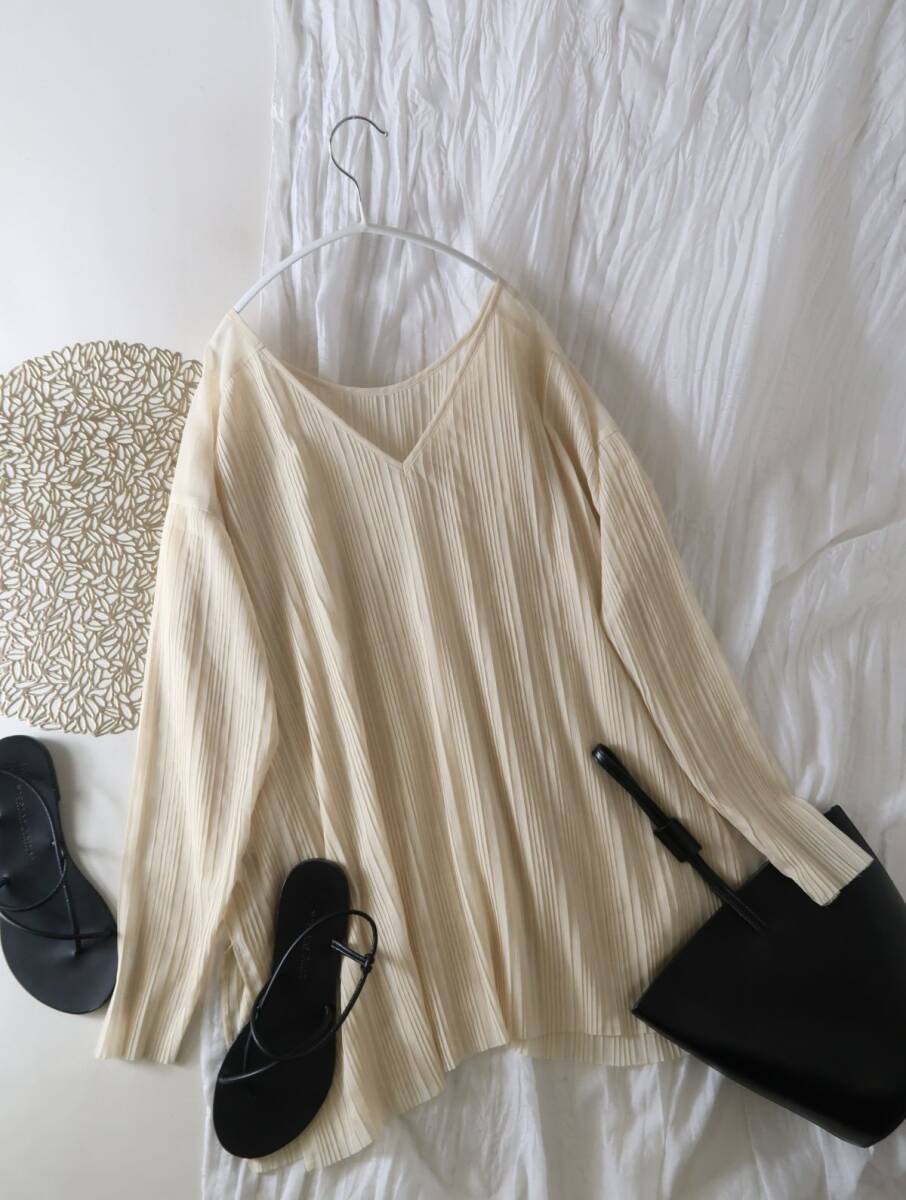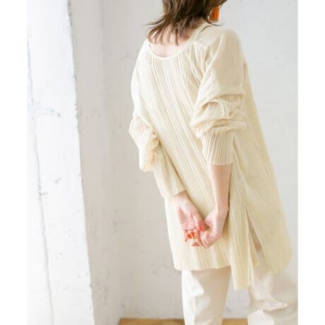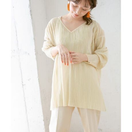 透け感のある素材で仕上げた春らしいプルオーバー。細かいプリーツや首元を綺麗に見せてくれるデザインが女性らしさを引き上げます。前後2WAY仕様になっているので、その時々によって着方を変えられる。パンツ、スカートのどちらにも合わせやすいデイリーユースにおすすめの1着です。