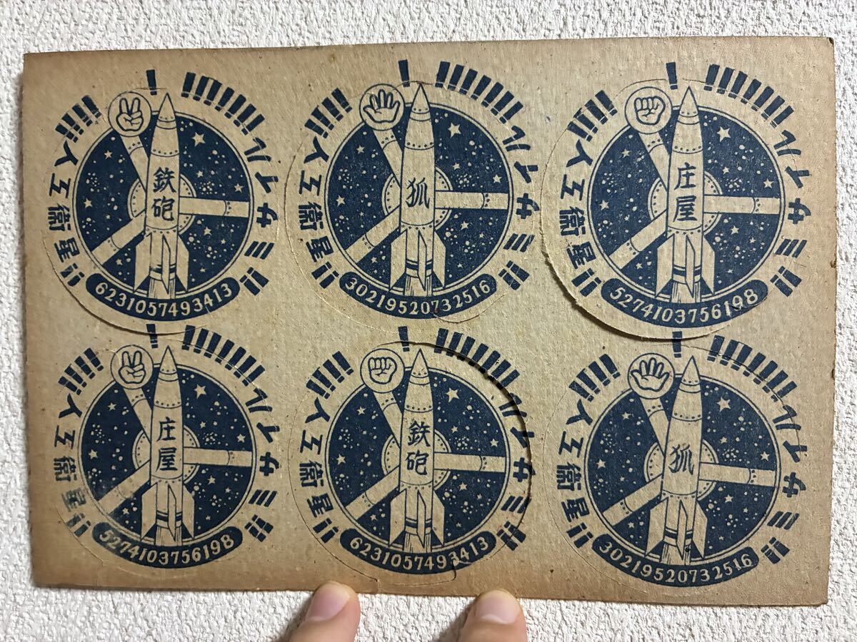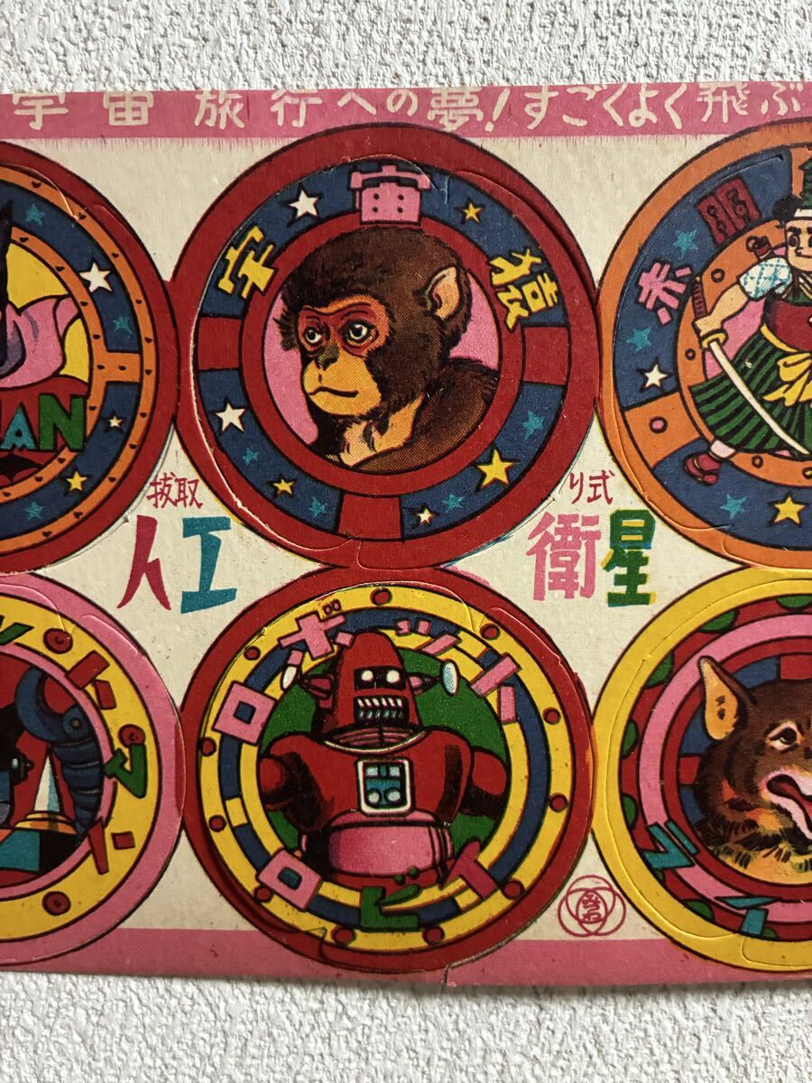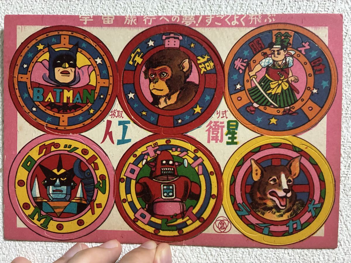 表:宇宙・ヒーロー系6絵柄(ライカ犬/ミステリアン/スーパーマン/ロボット/ロボットモグラ/赤胴鈴之助)。