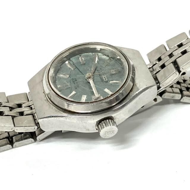 仙10【稼働】CITIZEN 4-691041 28800 腕時計 自動巻 21石 カットガラス シチズン AT レディース グリーン文字盤 ラウンド