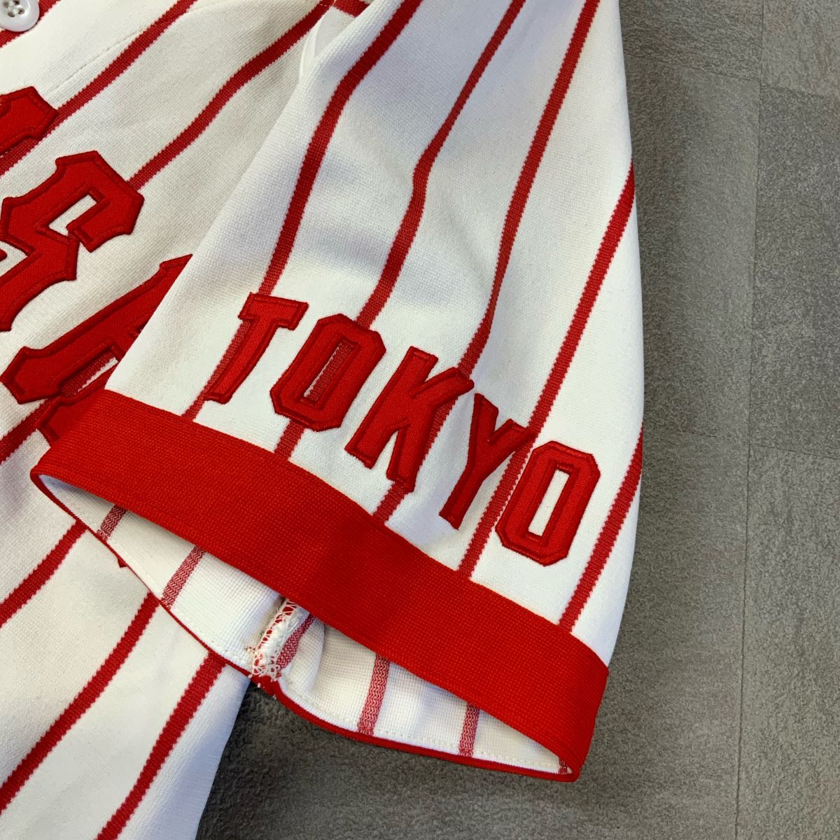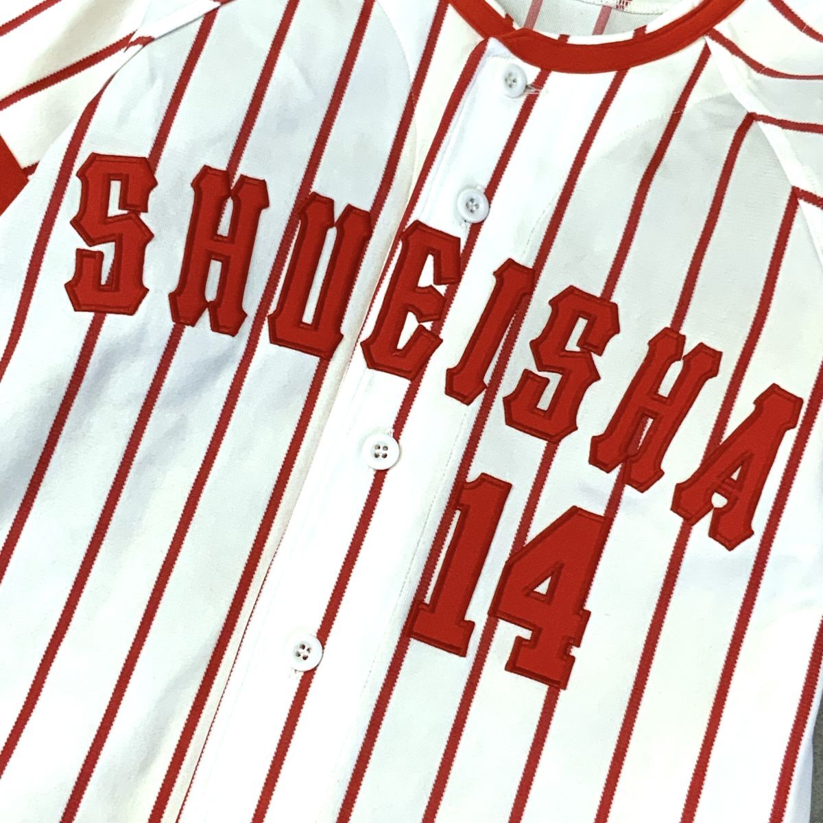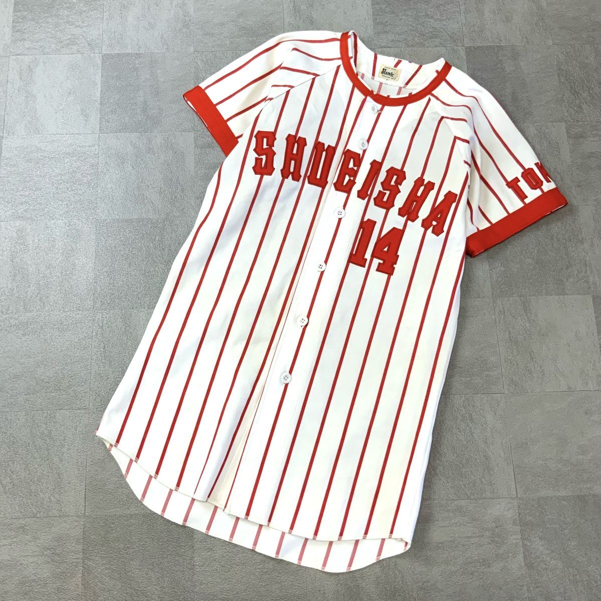 激レア 入手困難 非売品 集英社 ユニフォームシャツ ベースボールシャツ 野球 東京 刺繍 草野球 メンズ L相当 レッド ホワイト HAWK製