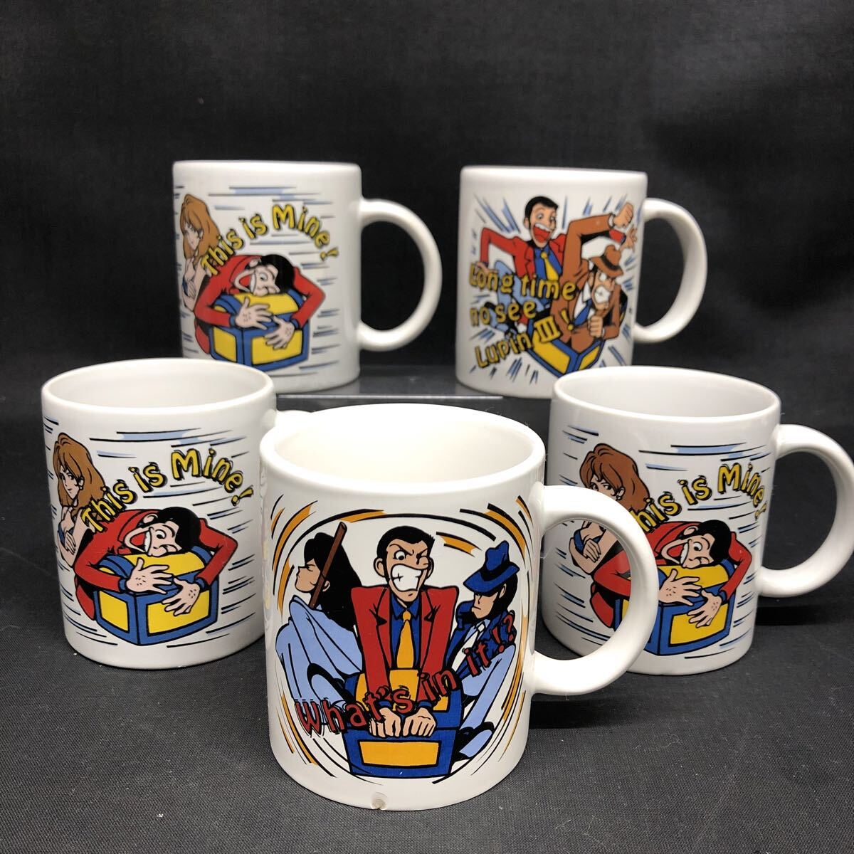 Y2024 【 エッソ ルパン三世 】30周年 マグカップ 5個まとめて 3種 1997年 ノベルティ 非売品 峰不二子 銭形警部 現状品 esso