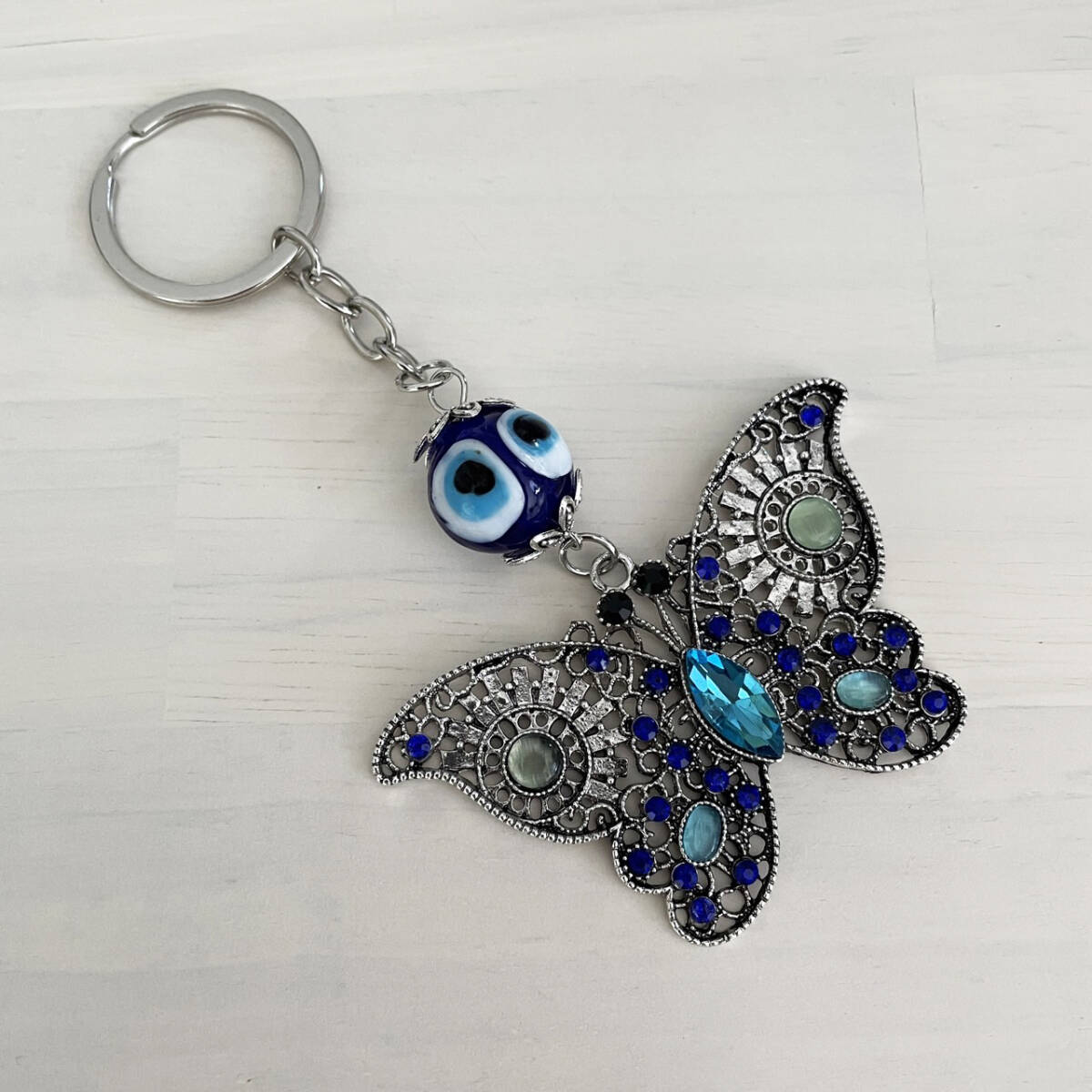 ブルーのラインストーンが目をひく蝶のデザインです。