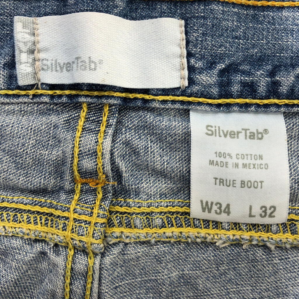 | [商品管理番号] V0415 [ブランド] Levi's/リーバイス [サイズ] W34 L32 [実寸サイズ] ウエスト:約90cm 股上:約31cm 股下:約80cm わたり幅:約33cm 裾幅:約25cm [主な素材] 表地 : コットン [色] ライトブルー [仕様] TRUE BOOT SilverTab シルバータブ [状態] 汚れ:裾、股、ヒップ、もも、ひざ、スネ 破れ:裾 特記事項:パッチ欠損 | |||