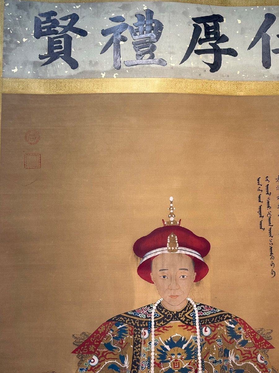 【安】中国清時代画家「沈振麟書」絹本「咸豊皇帝画像図」掛軸 共箱 中国画 墨寶妙品 中国書道 古美術 371 サイズ(約寸) |