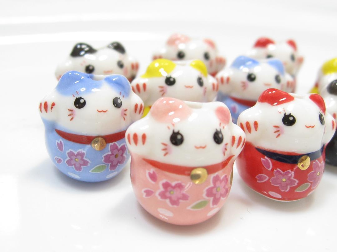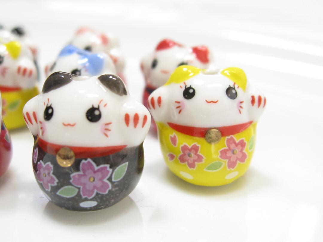 キュートで可愛い、招き猫のトンボ玉、10個セット!です。