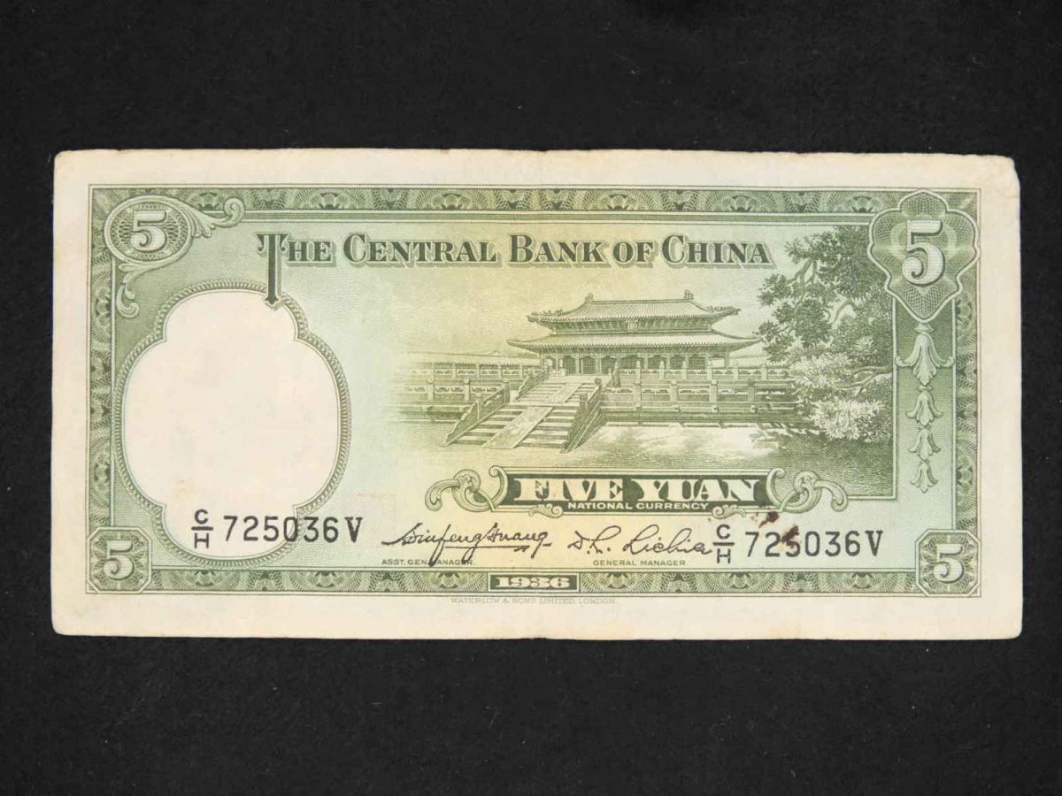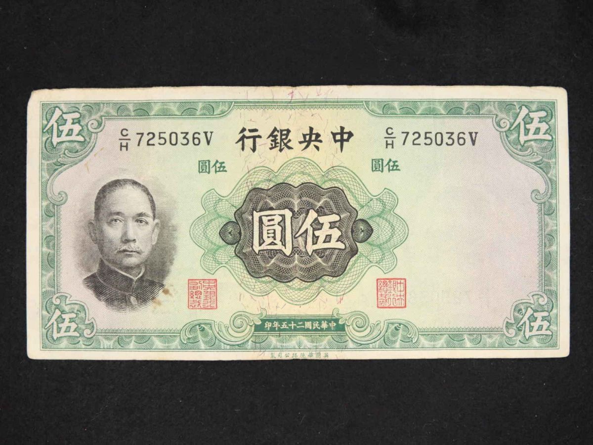 *[令]中国紙幣 中央銀行 5圓(1936)P-217[3602]7o2