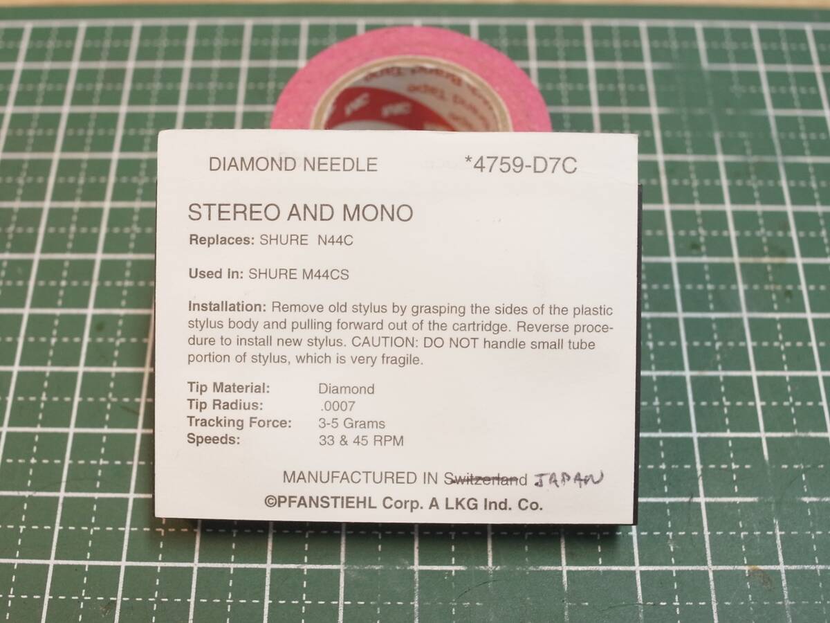 米・ファンスティール SHURE シュアーM44C/M44-7/M44G 用 社外製交換針 三角窓 未開封品