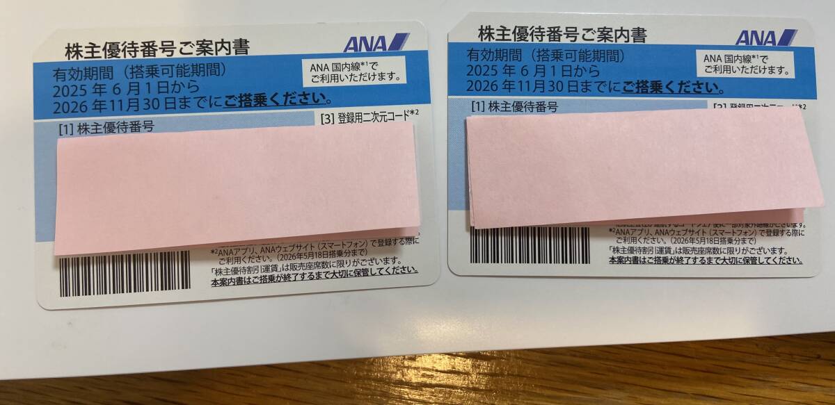 ANA株主優待券 2枚 【期間】2025年6月1日~2026年11月30日までにご搭乗