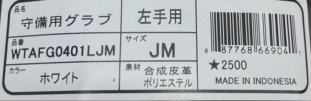 定価2750円 JM 17.18cm ウィルソン 片手 守備用手袋 グラブ グローブ ホワイト 白 守備手袋 野球 ジュニア 少年 子ども 左手用