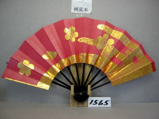 舞扇子 A1565 金箔桜揉み入雲 赤シルバー引き 【箱なし】