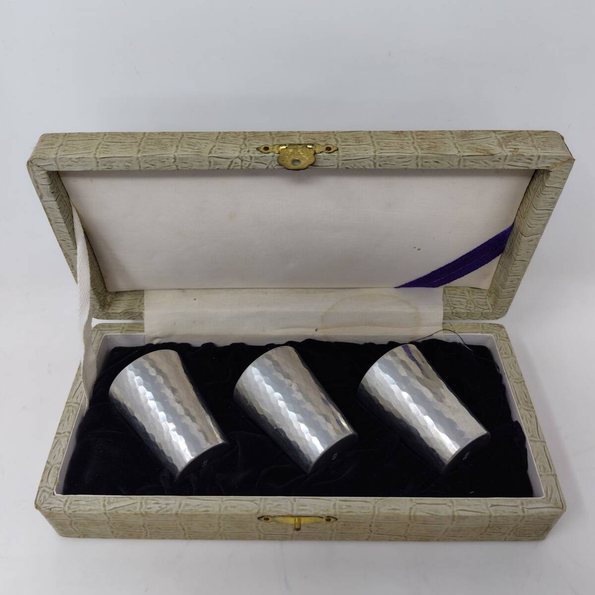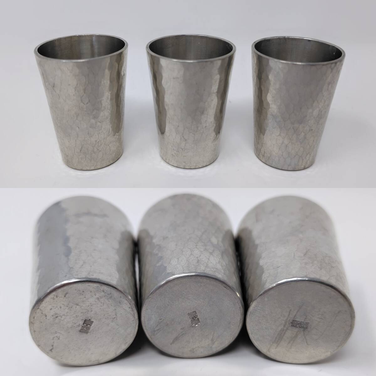 【 送料無料 】◆ 錫 酒器 セット 元箱付き 口径3.5cm 高さ4.8cm すず お猪口 ショットグラス ぐいみ 金属工芸品 コレクション レトロ 趣味