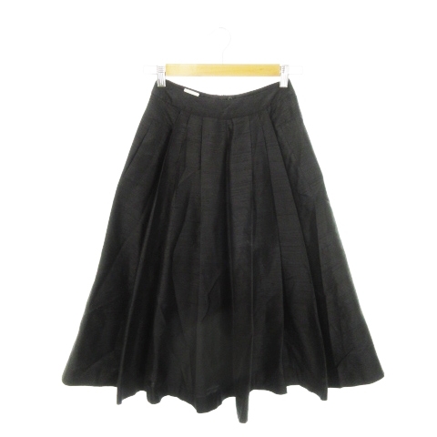 アルマーニ コレツィオーニ ARMANI COLLEZIONI フレアスカート ロング シルク 絹 タック ネップ 小さいサイズ 38 XS 黒
