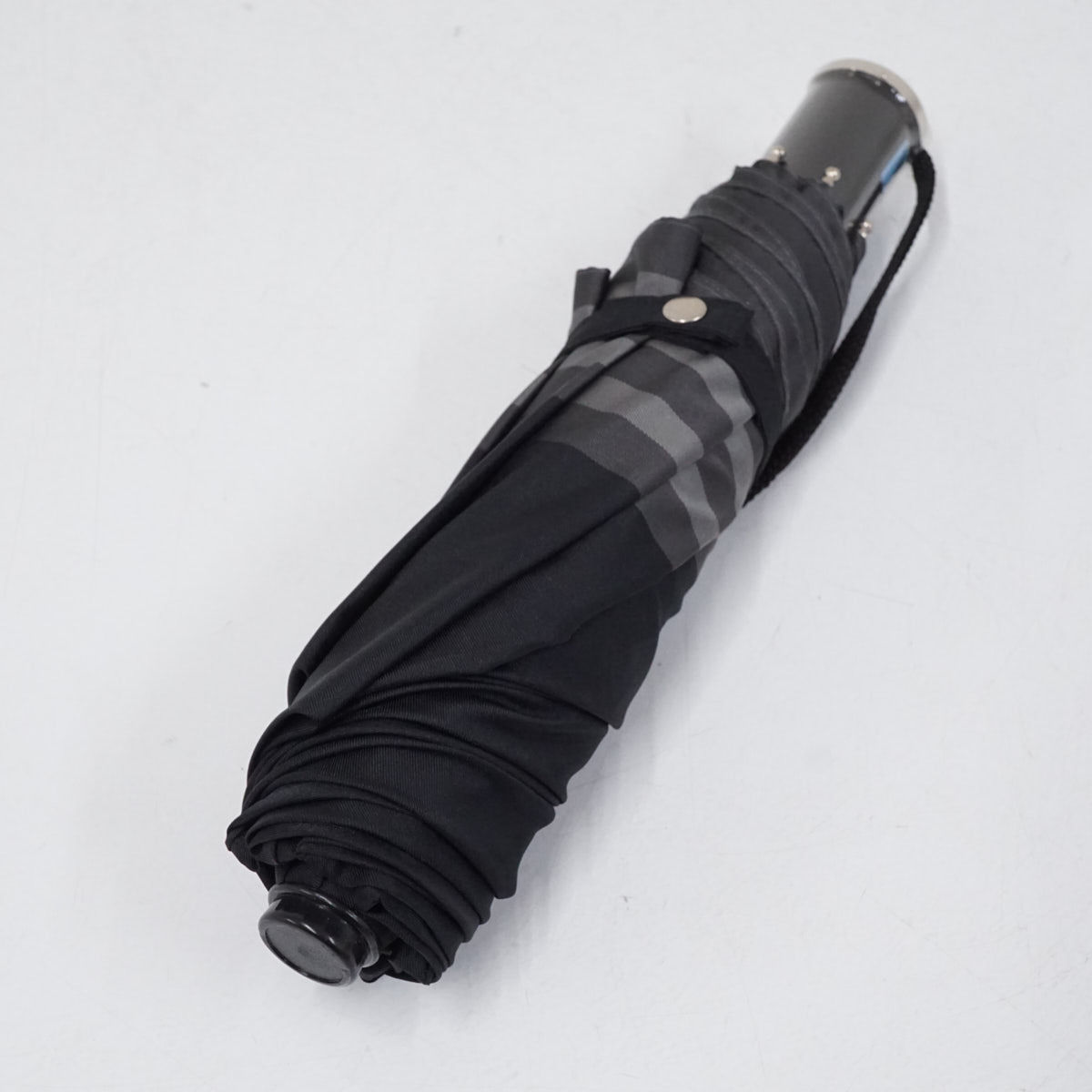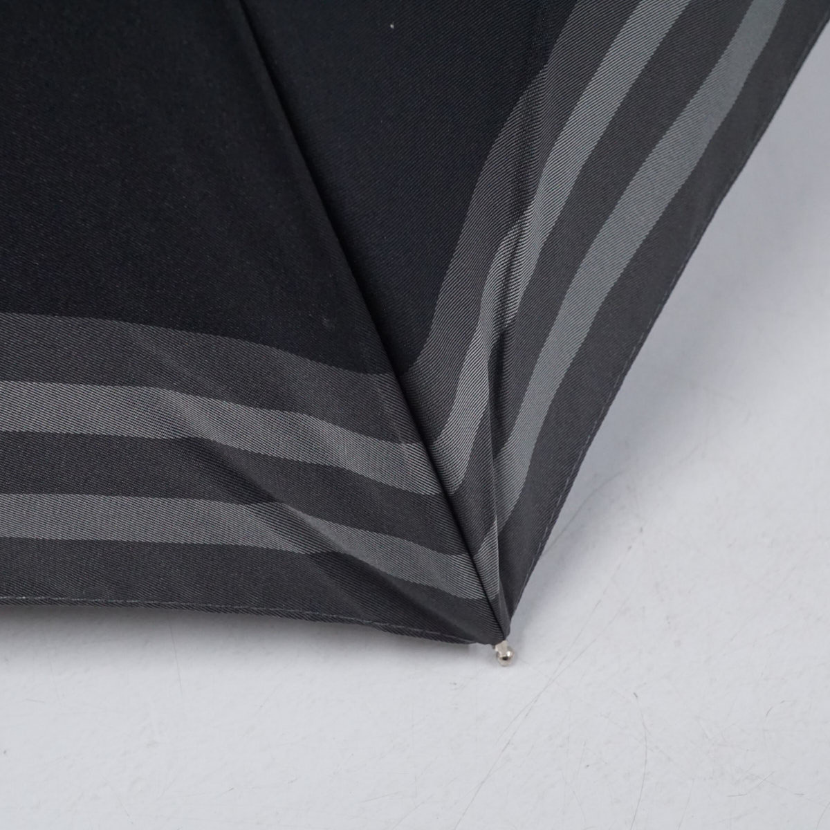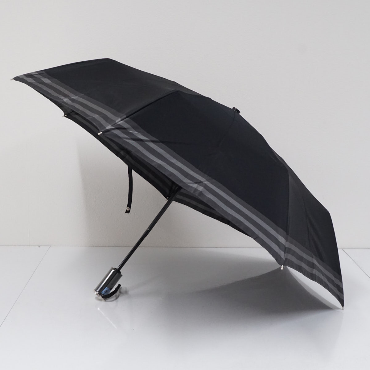★☆折りたたみ傘 LANVIN en Bleu ランバン オン ブルー USED美品 メンズ 自動開閉 ボーダー グラス骨 ブラック 55cm FS9261☆★
