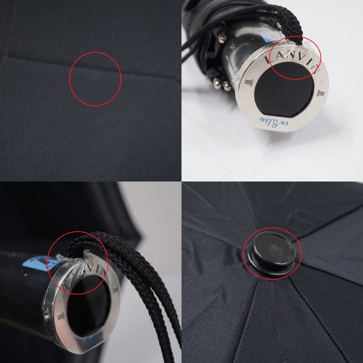 折りたたみ傘 LANVIN en Bleu ランバン オン ブルー USED美品 メンズ 自動開閉 ボーダー グラス骨 ブラック 55cm FS9261