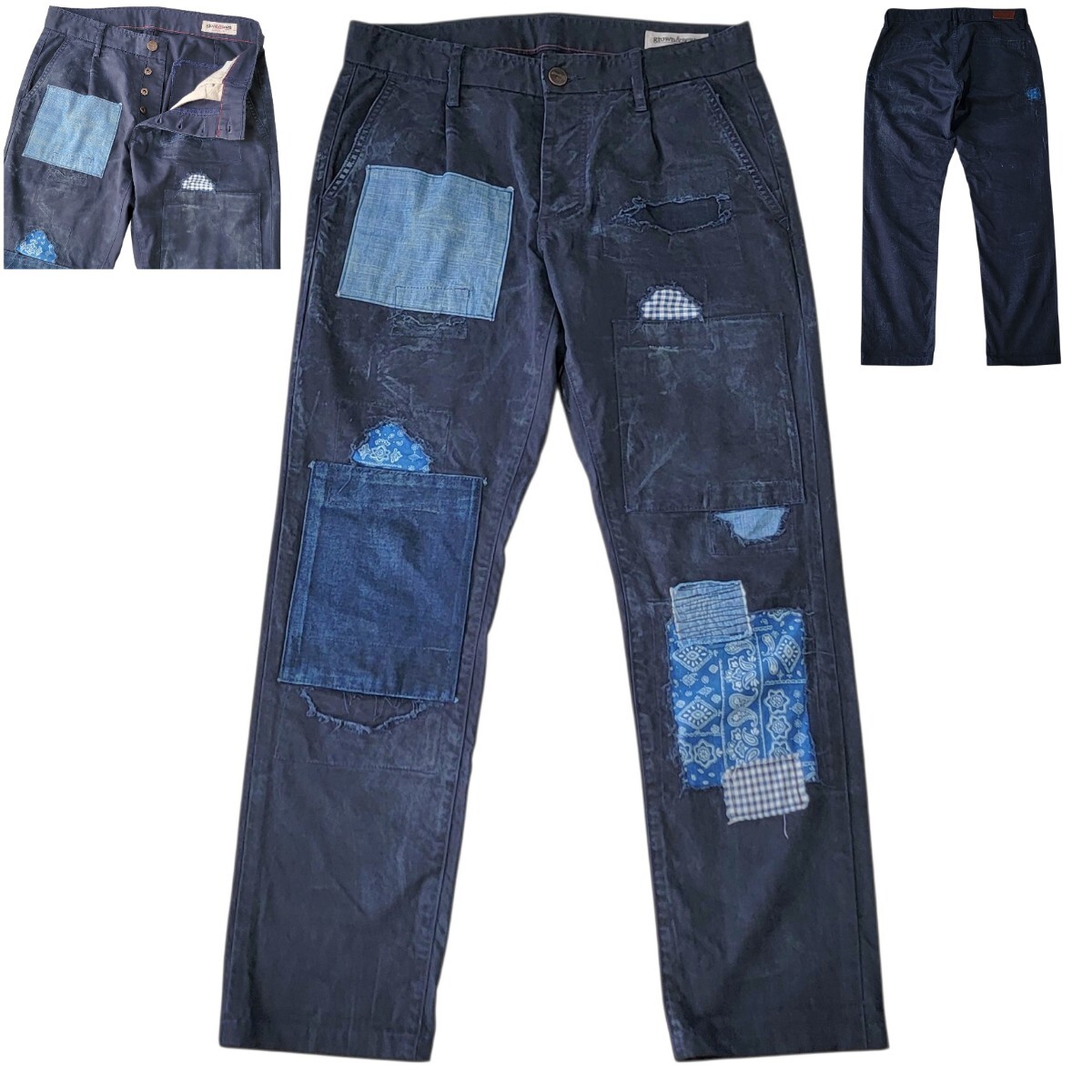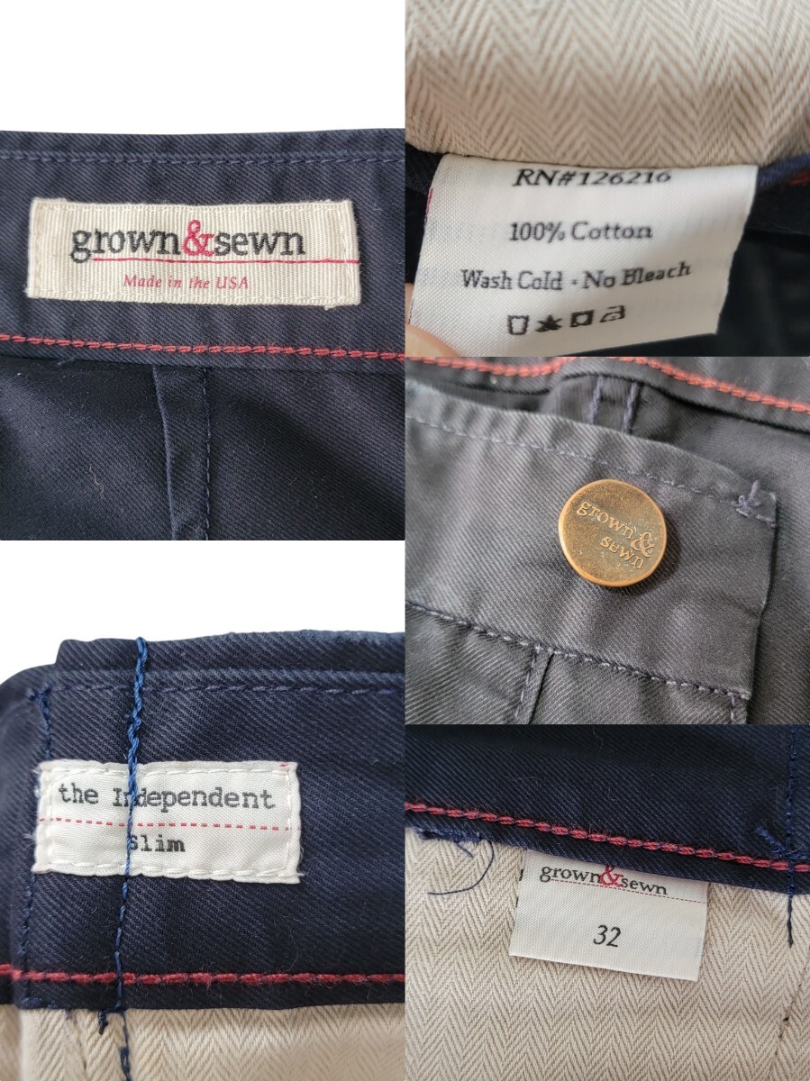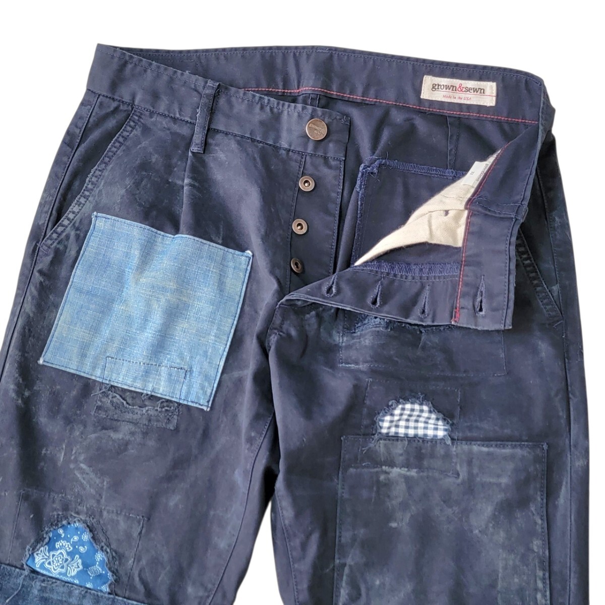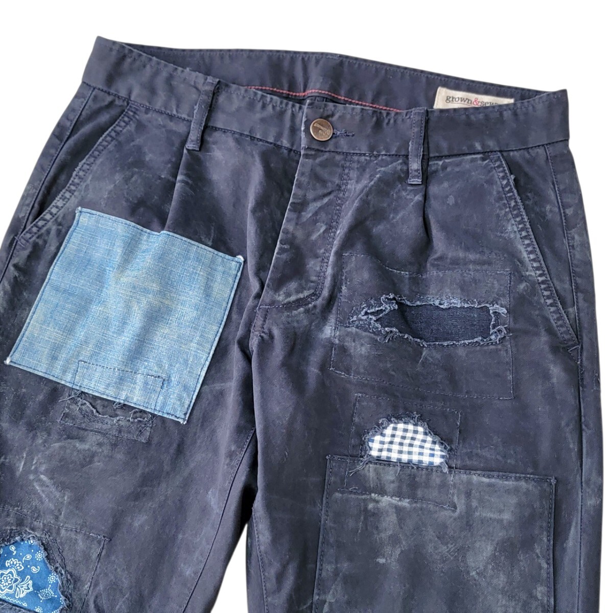 希少モデル USA製 チノパン専業ブランド grown&sewn グロウン&ソーン パッチワーク加工 刺し子 ユーズド加工 チノパン independent 32 日本L程度