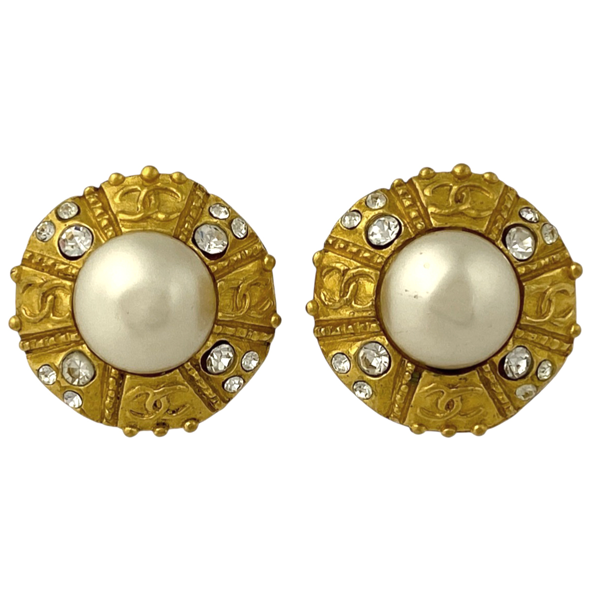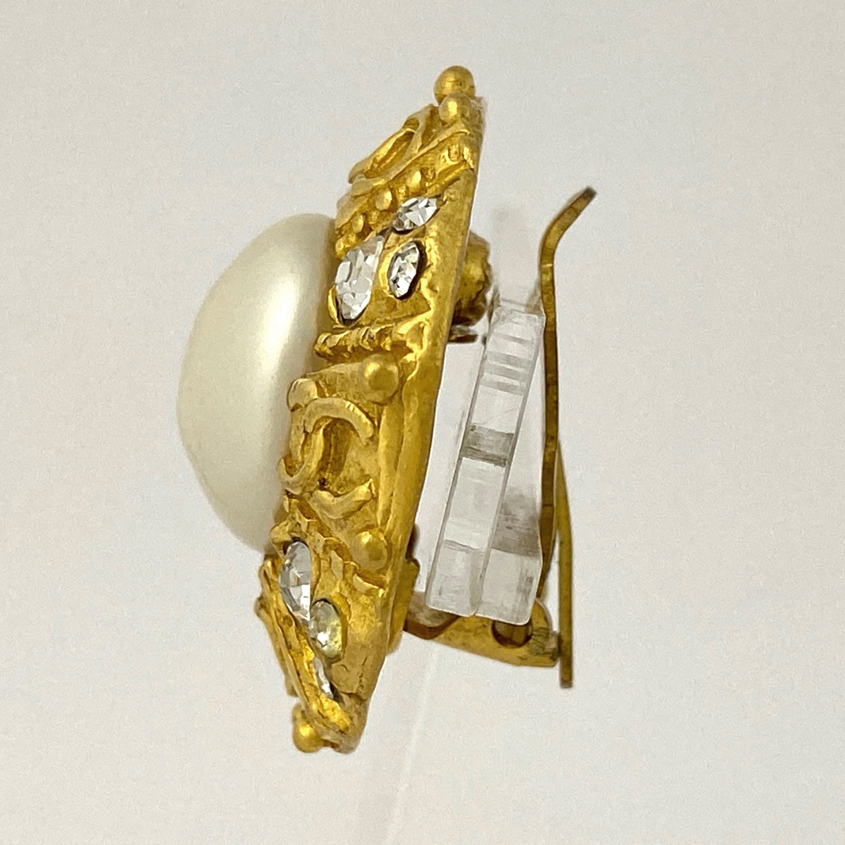 | シャネル CHANEL ココマーク フェイクパール イヤリング ラウンド イヤリング GP ラインストーン ゴールド レディース 【中古】 |