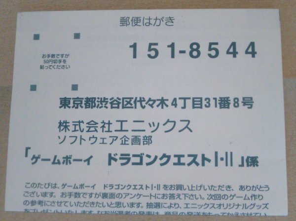 !ハガキのみ! ゲームボーイ ドラゴンクエスト 1 2 【匿名発送・追跡番号あり】