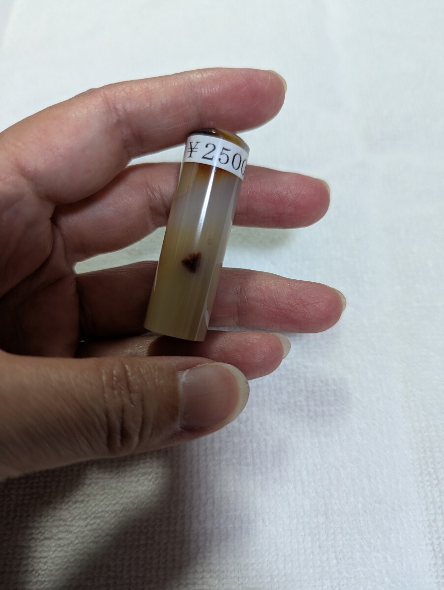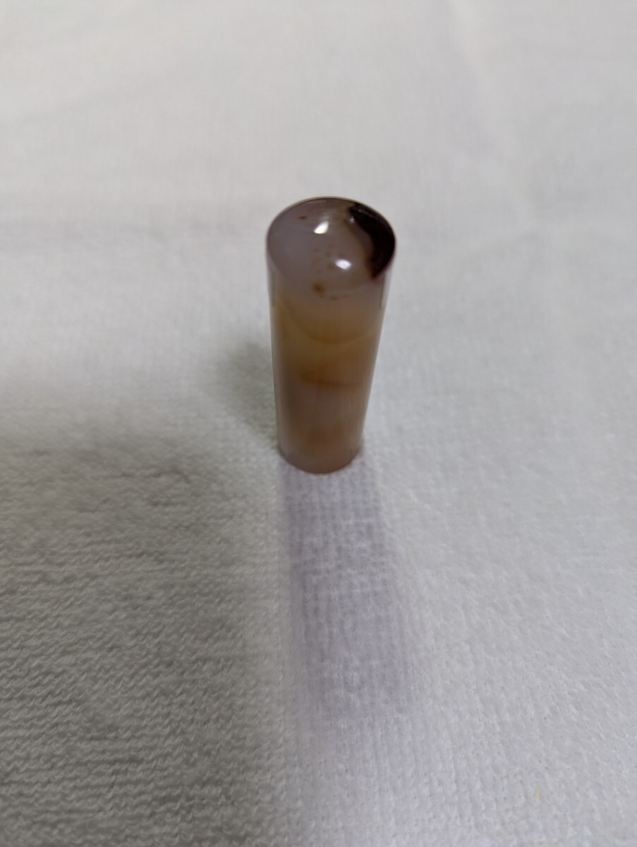 ベージュに赤茶のマーブル模様 円柱…重さ18.88g 長さ約4.7cm 直径約1.5cm(25,000円の価格表記あり)