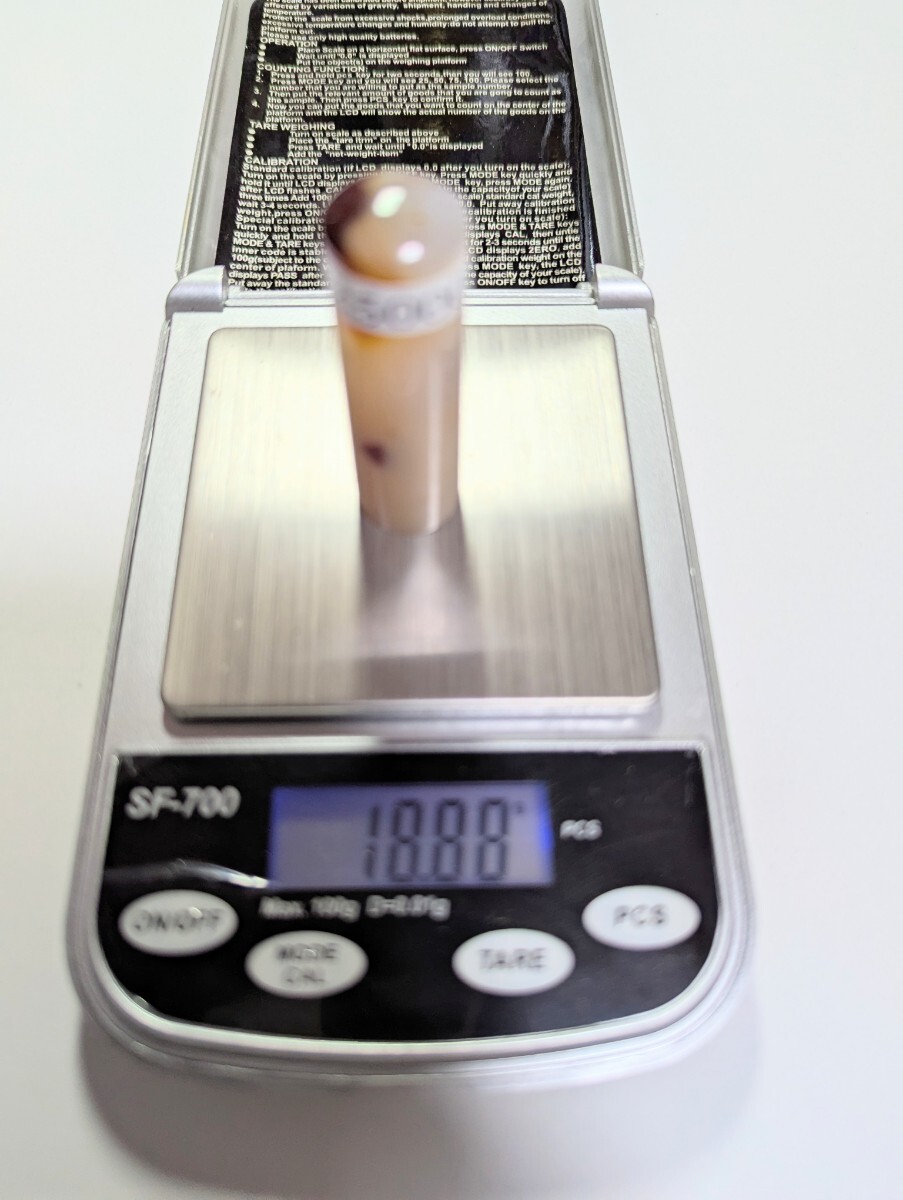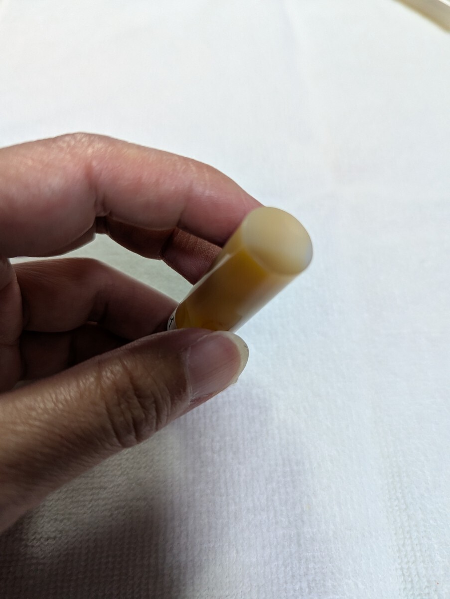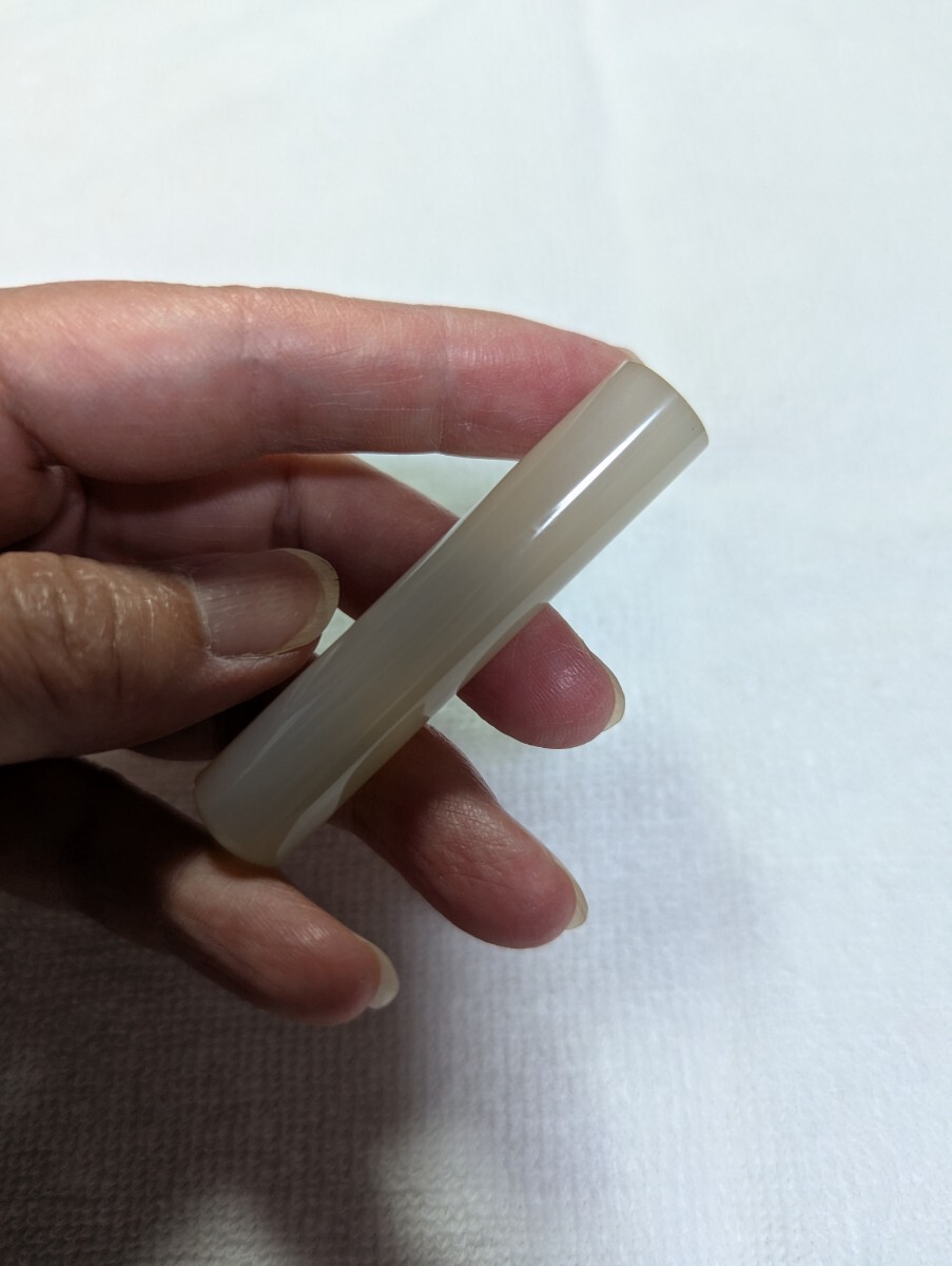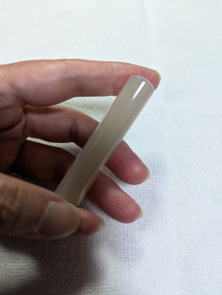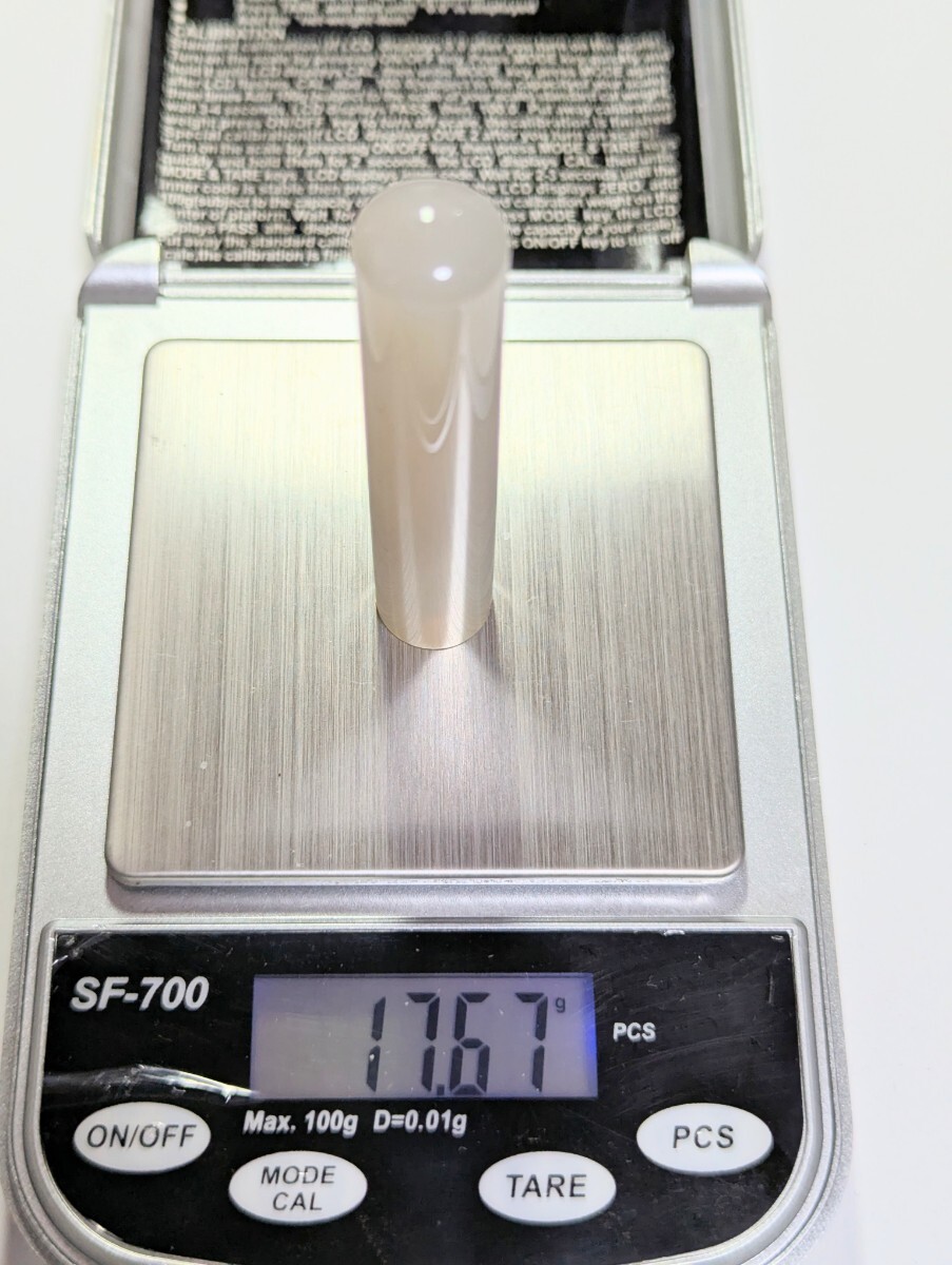 白みのグレーベージュ、半透明 円柱…重さ17.67g 長さ約6.0cm 直径約1.1cm