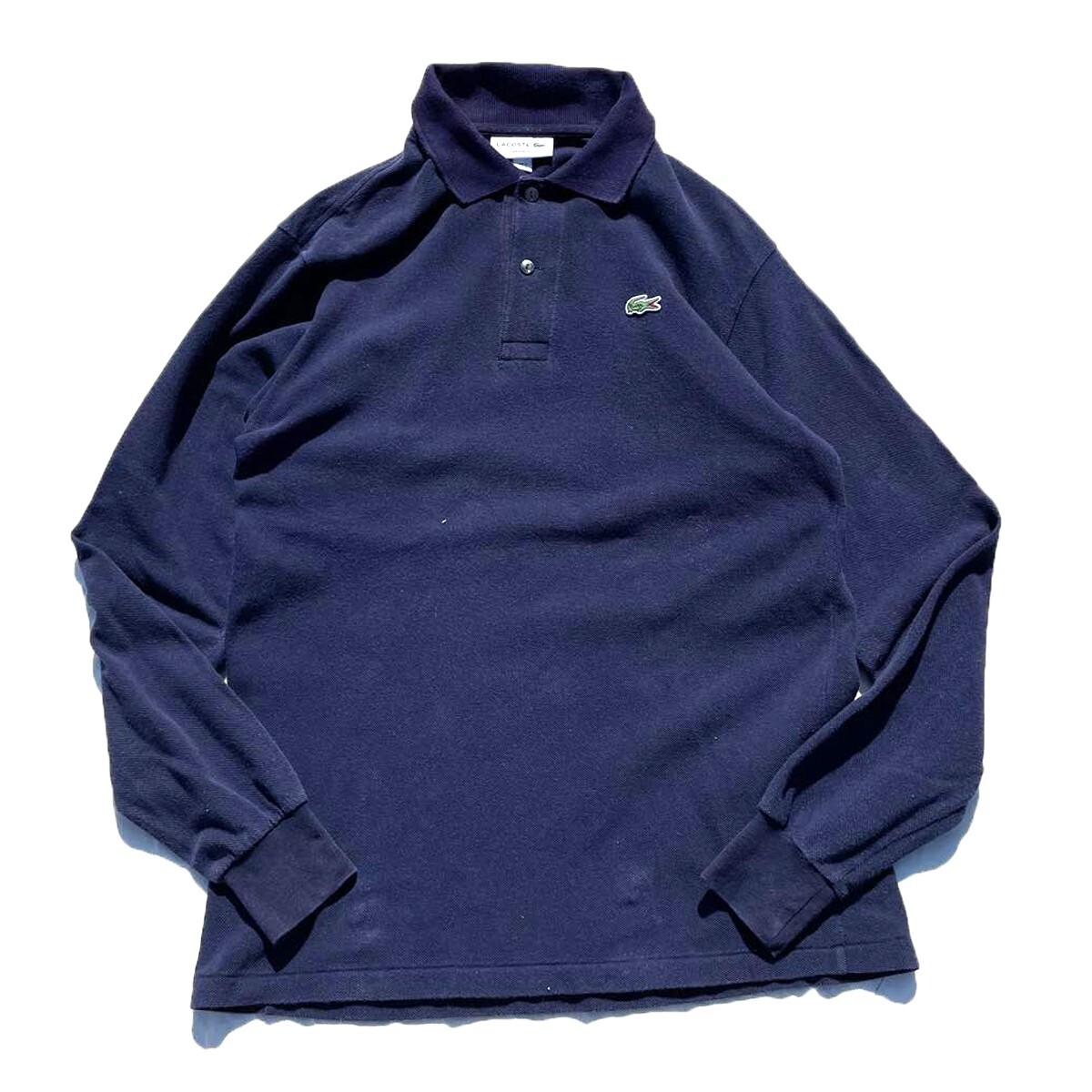 人気モデル! 日本製 LACOSTE ラコステ ヴィンテージ ワニロゴ 鹿の子 長袖 ポロシャツ 定番色 ネイビー 紺 FR3 US5 メンズ 古着 アメカジ