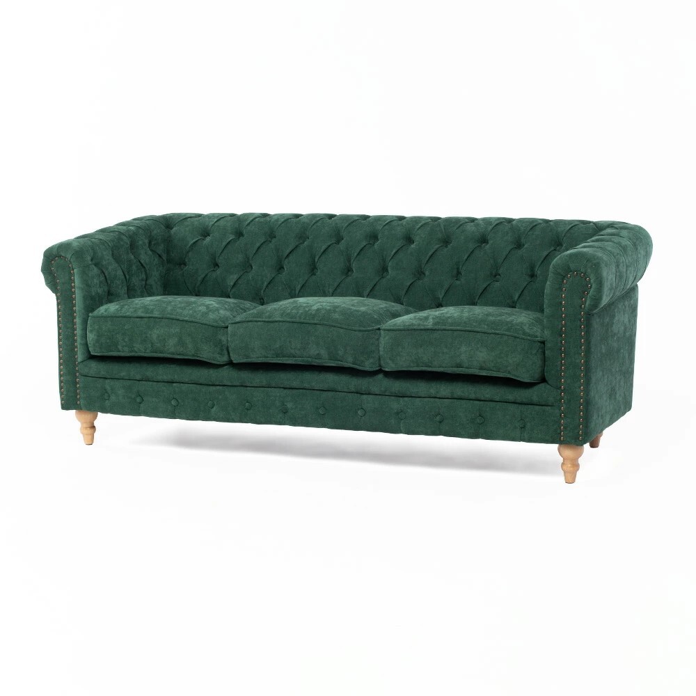 背もたれなどに施されたボタン留はクラシックな美しさがあり、単鋲の鋲飾りはデザインのアクセントになります。