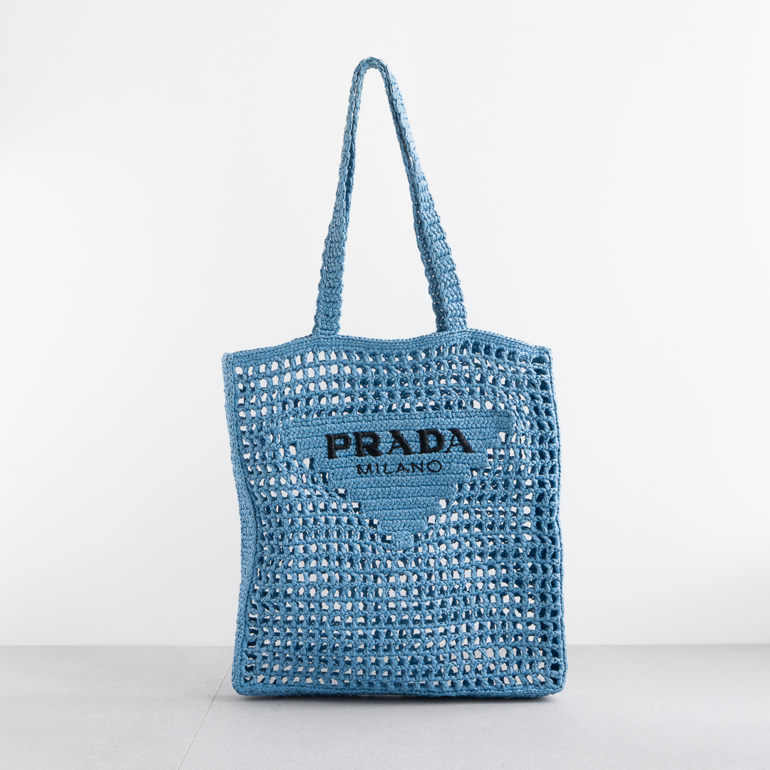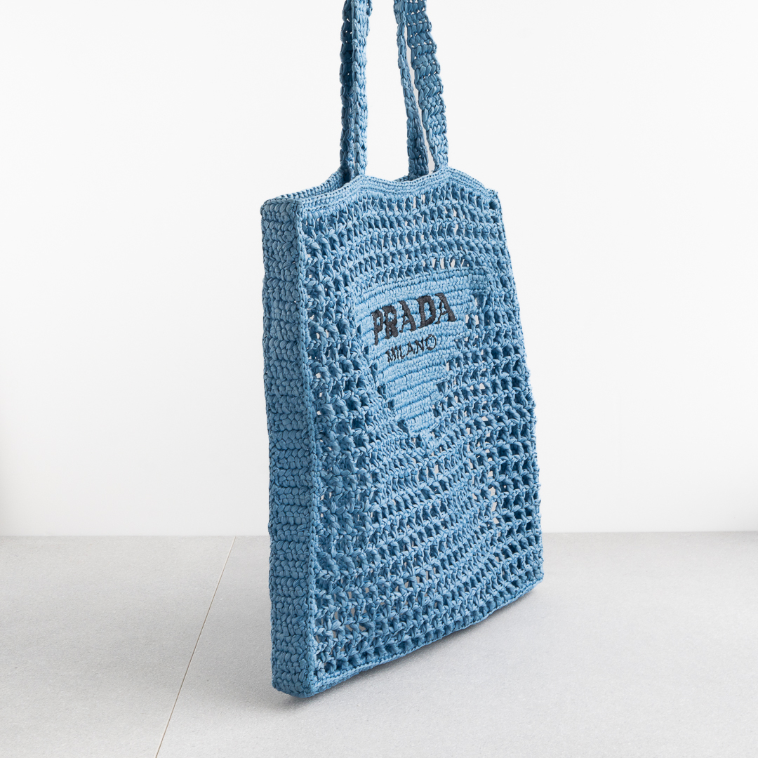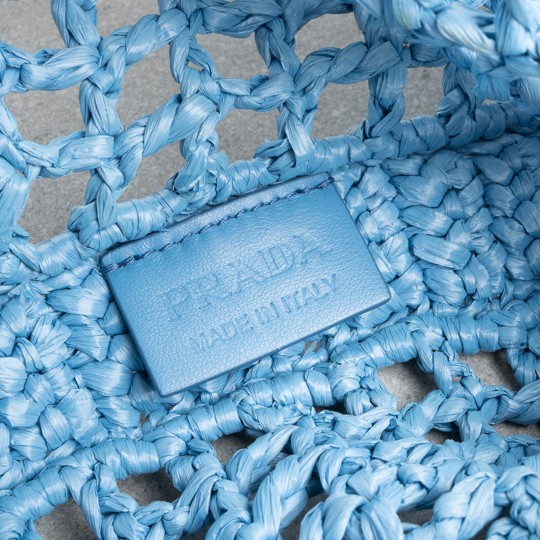 PRADA プラダ クロシェ トートバッグ ブルー ラフィア かごバッグ 1BG393 青 ブラック トライアングル ロゴ