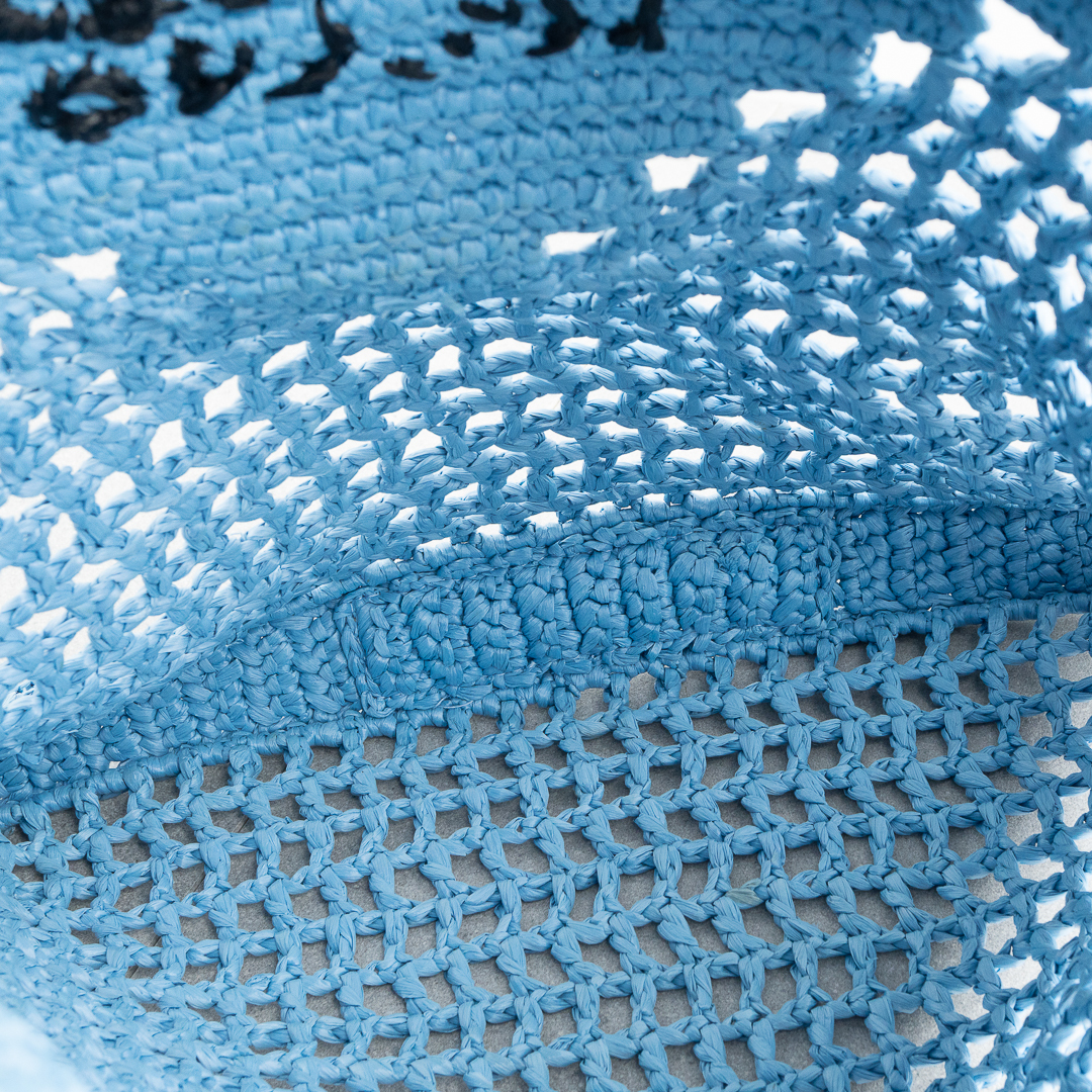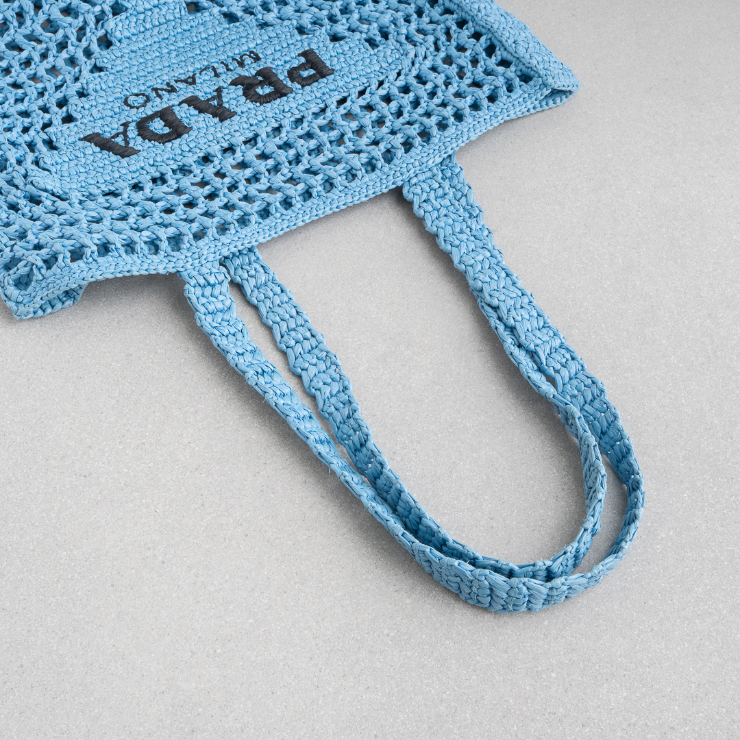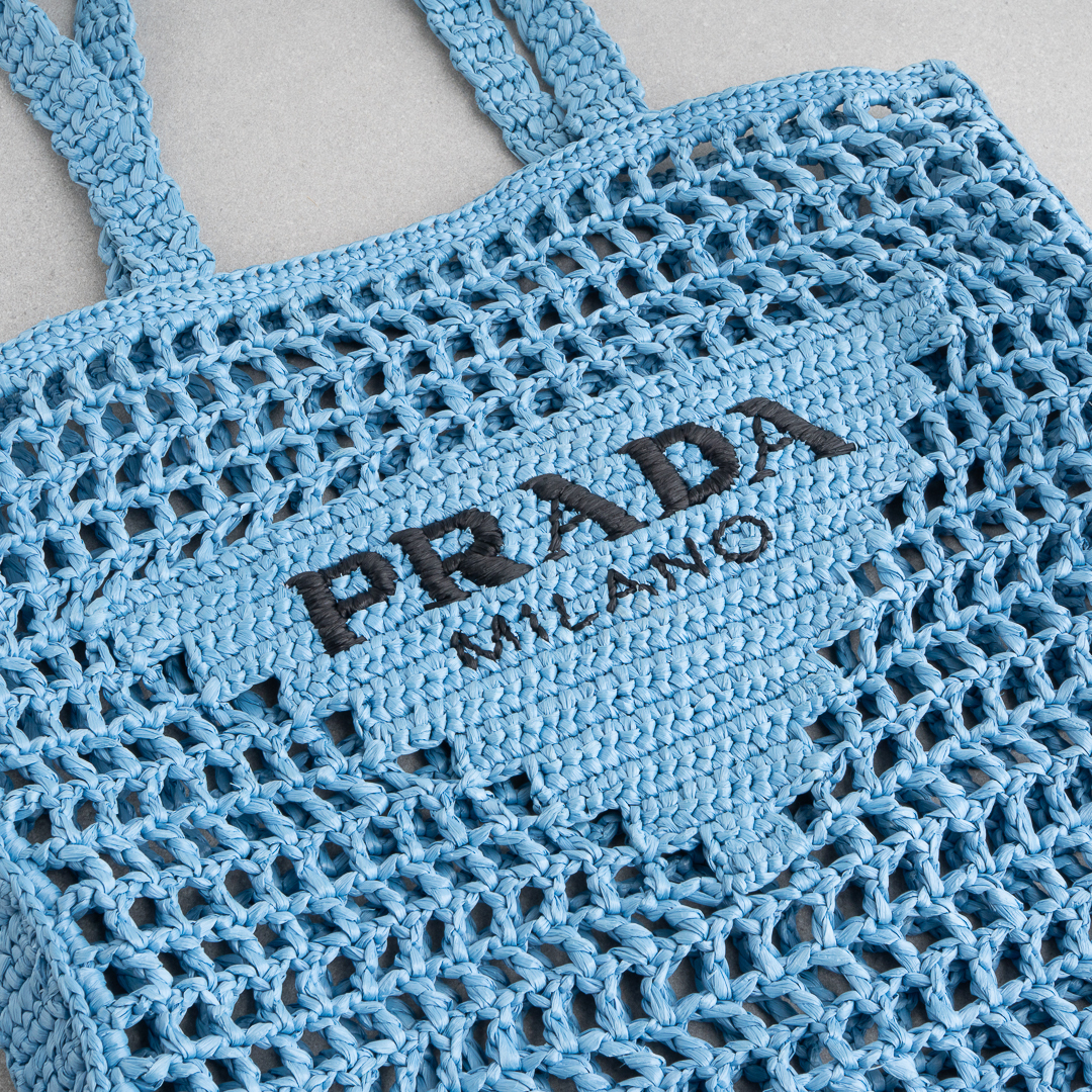 PRADA プラダ クロシェ トートバッグ ブルー ラフィア かごバッグ 1BG393 青 ブラック トライアングル ロゴ