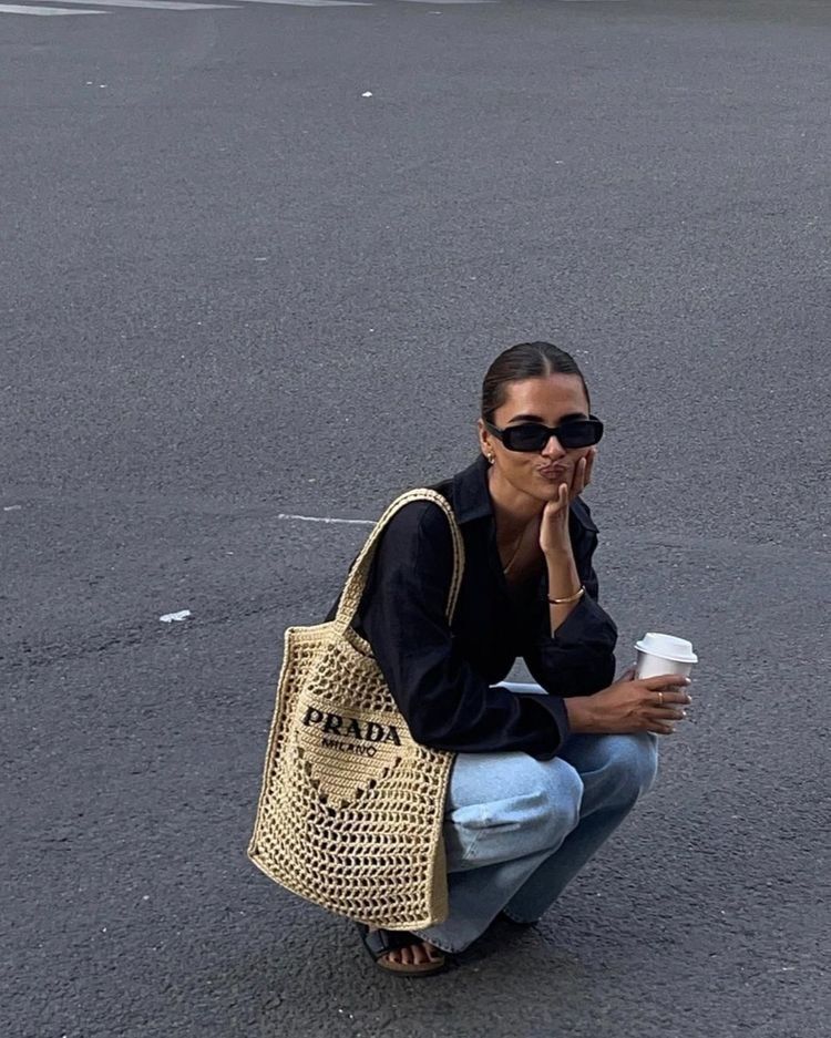 人気が高いプラダのクロシェトートバッグは、爽やかでクリーンなシンプルデザインが魅力。涼しげなブルーは、淡くやさしいトーンでコーディネートにもなじみやすいカラーです。ノートパソコンが入るたっぷりとしたサイズ感ながら、軽くて柔らかいため、折りたたんで持ち運ぶこともできます。普段使いにはもちろん、旅先でのサブバッグとしても活躍してくれます。季節を問わず長く愛用できる、実用性とデザイン性を兼ね備えたアイテムです。