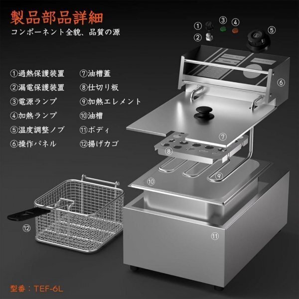 電気フライヤー フライヤー 家庭用 業務用 揚げ物器 調理器具 厨房機器 卓上フライヤー ステンレス 大容量 一槽式 ダブルシ