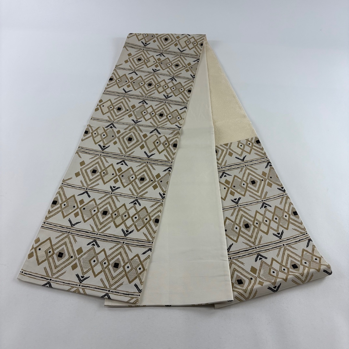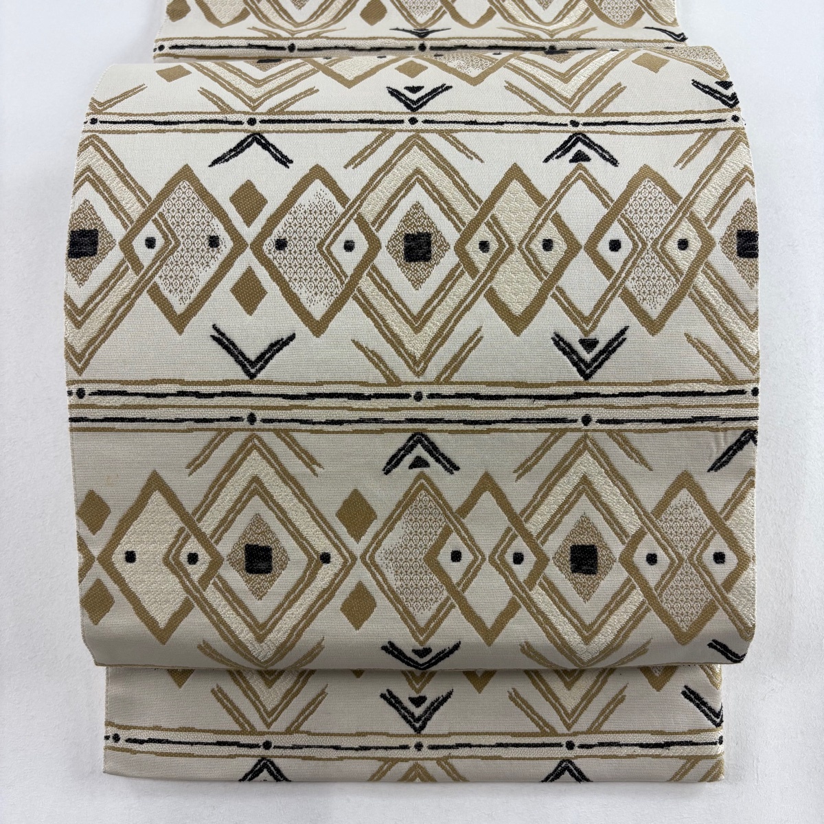| 袋帯 美品 名品 菱 段縞 ベージュ 六通 正絹 【中古】 |