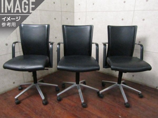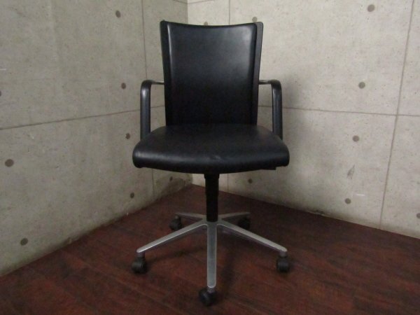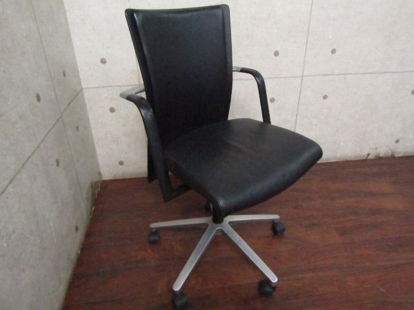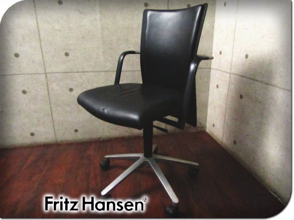 Fritz Hansen/SPIN/スピンチェア/Burkhard Vogtherr/北欧デンマーク/黒革/スタイリッシュ/オフィスチェア/アームデスクチェア/25万/spp363k