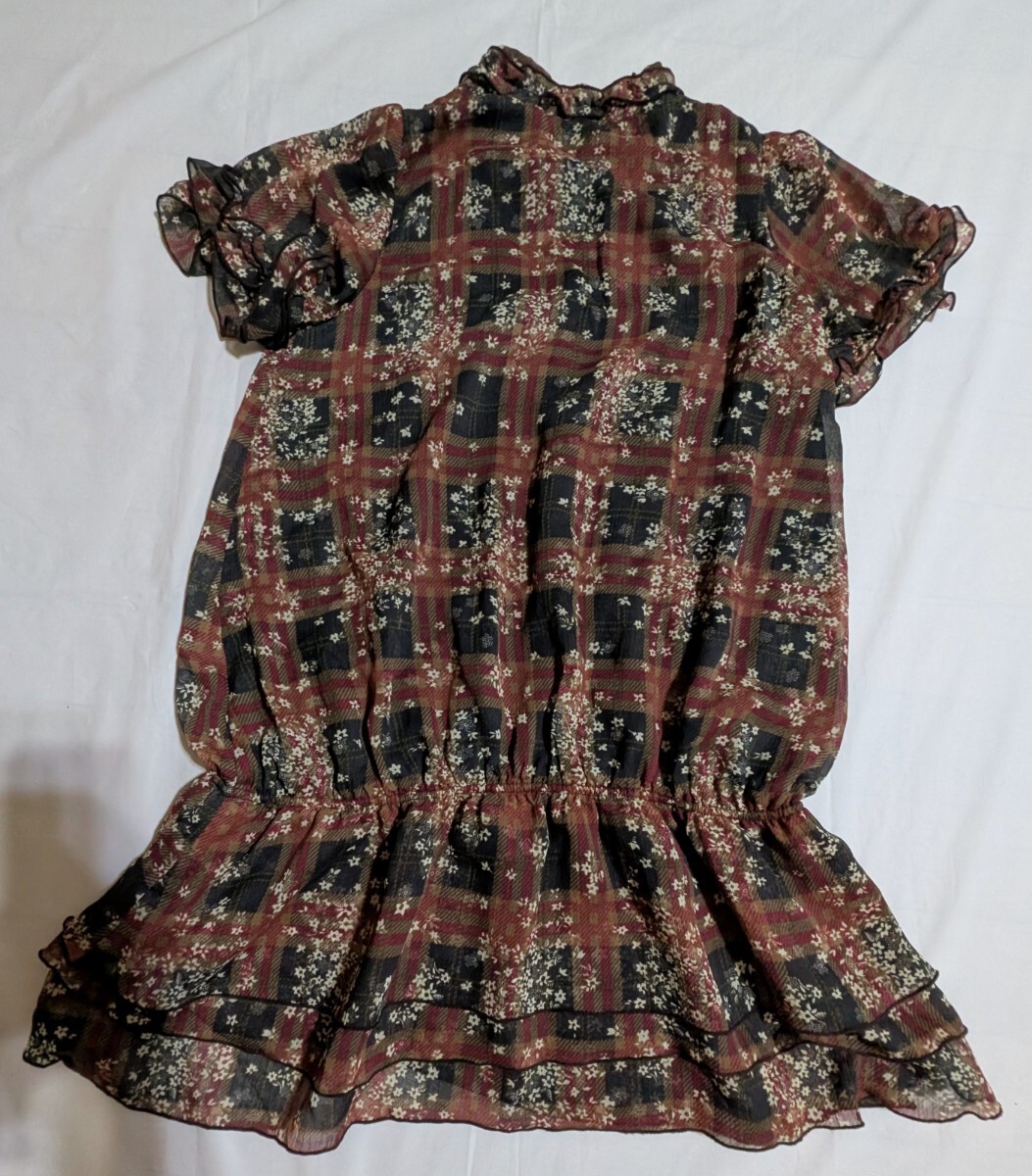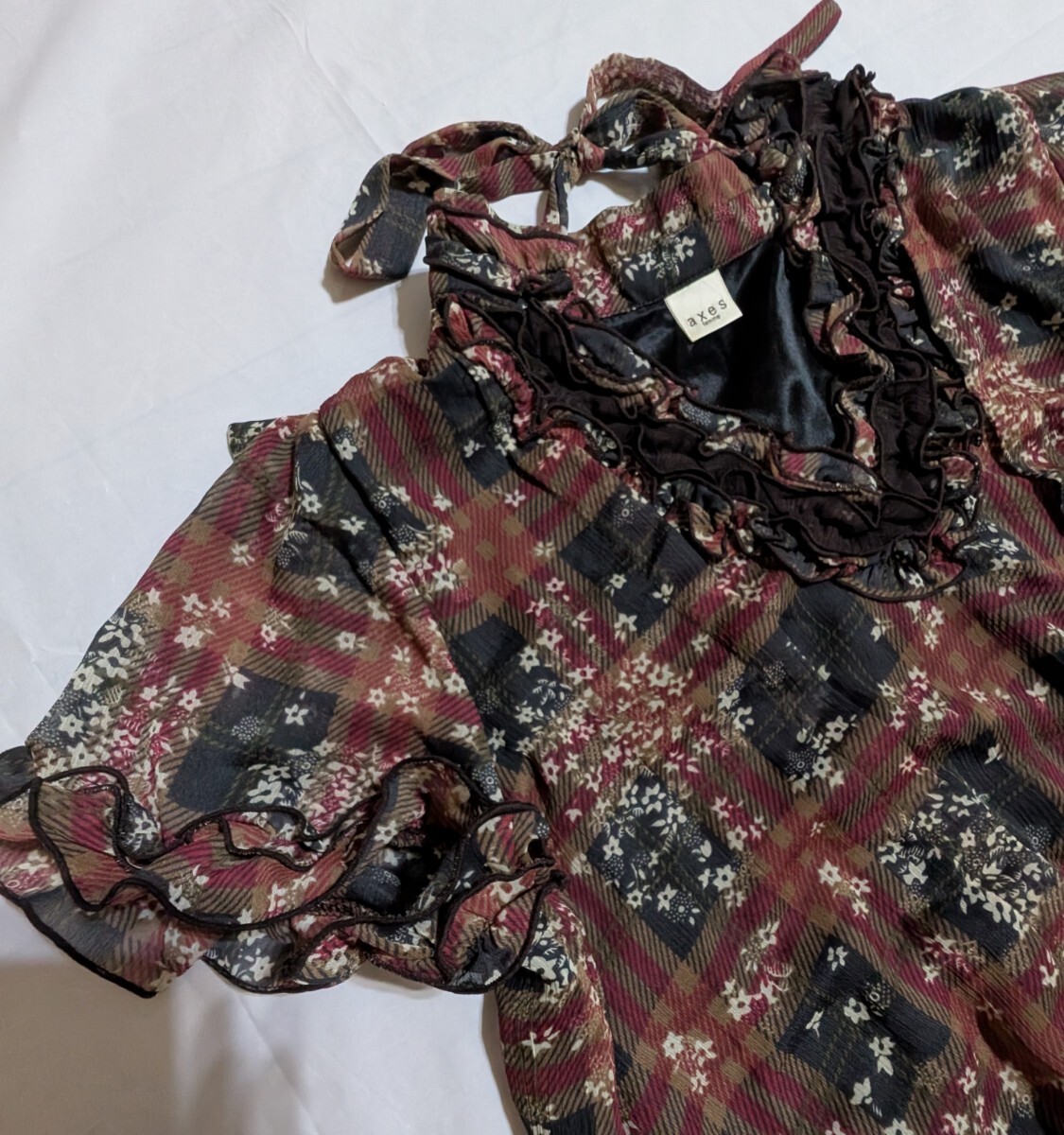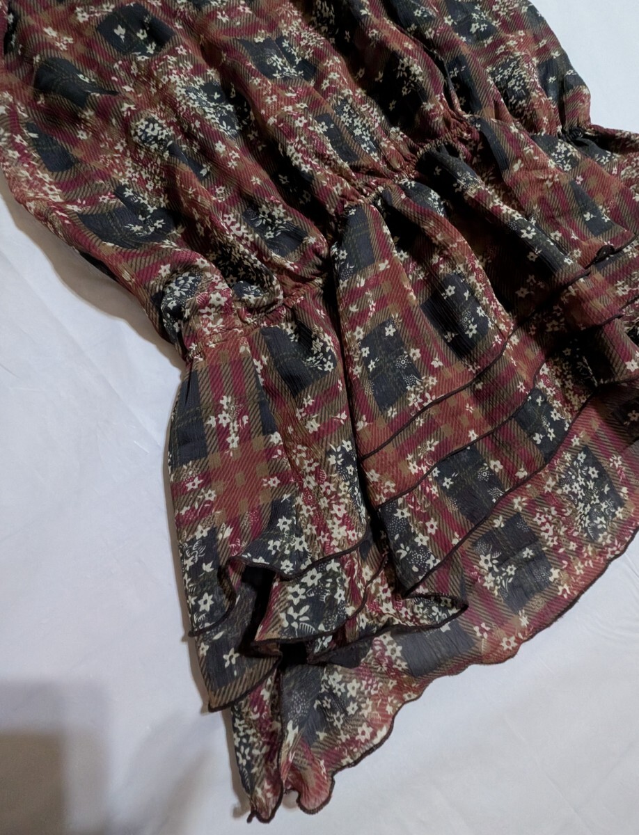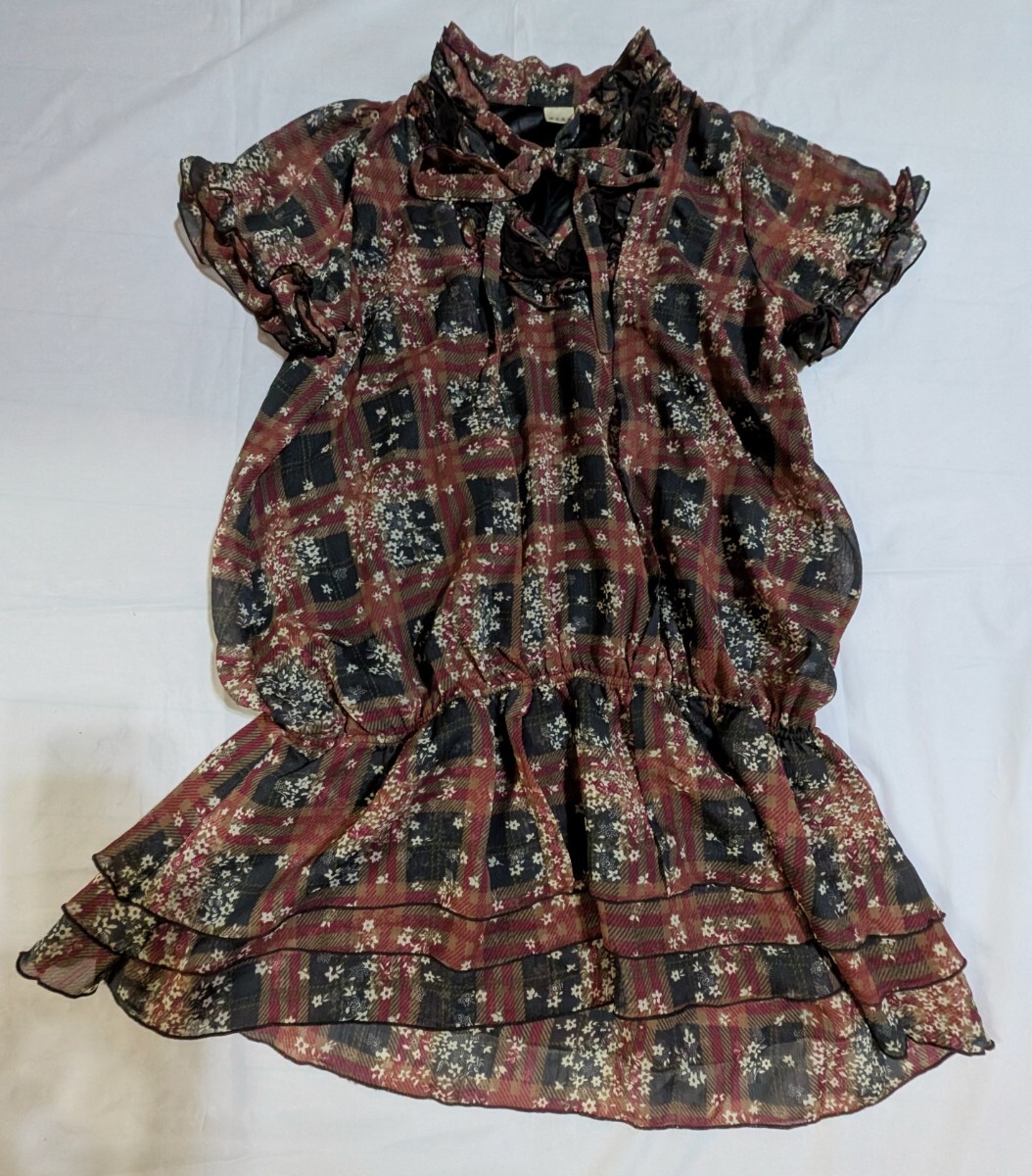 axes femme アクシーズファム赤茶マドラスチェック&花柄チュニックワンピ/M/美品! [管A-22]