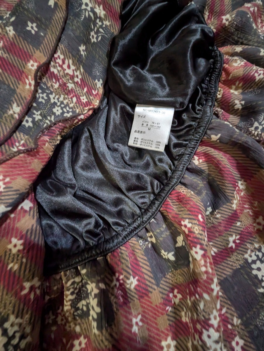 赤茶ベージュ等のチェック柄に小さな花がたくさん入ったデザインです