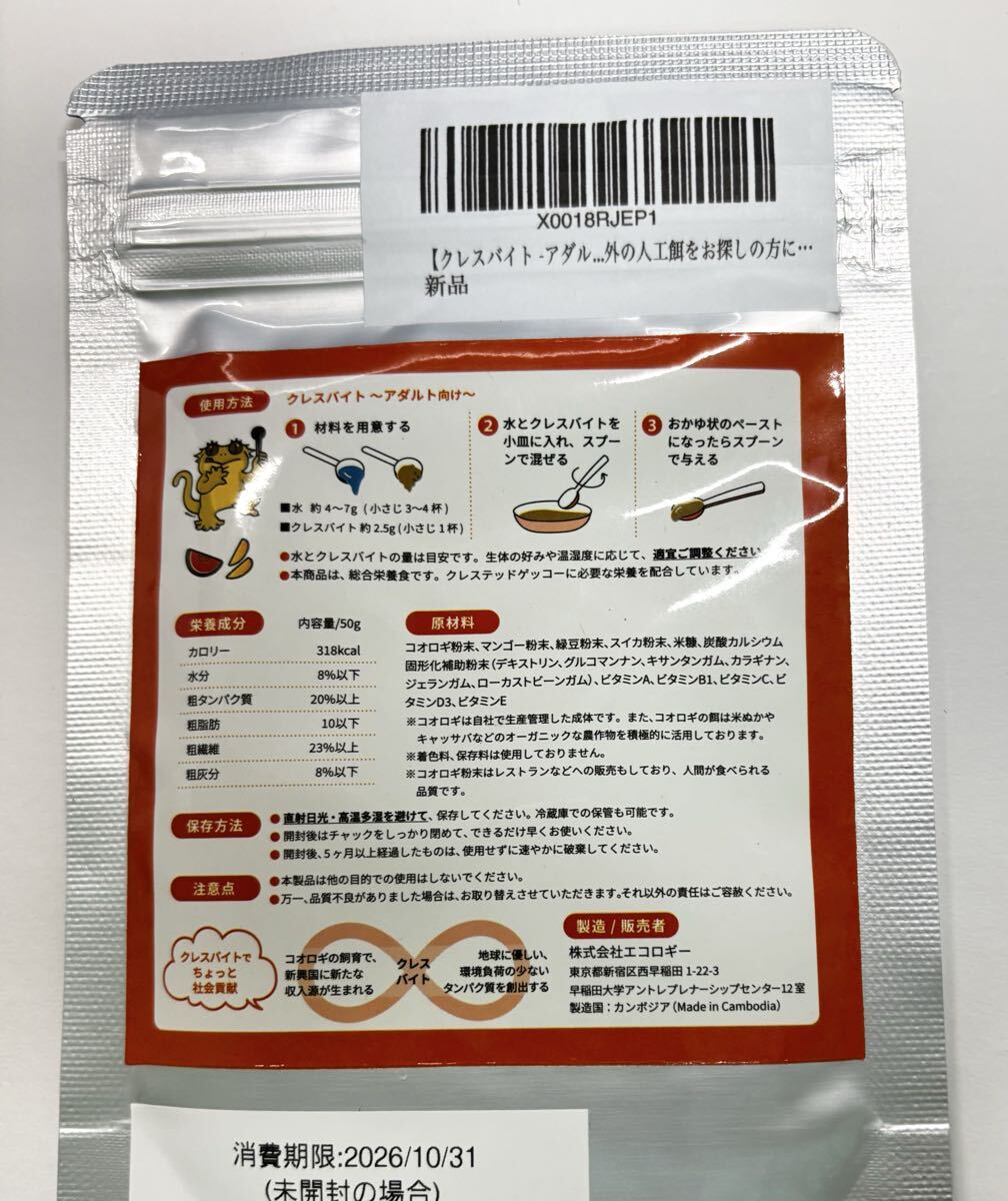 クレスバイト 50g アダルト向け 爬虫類 餌 コオロギ&フルーツ えさ