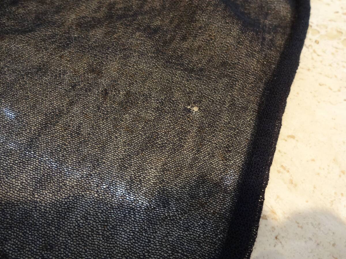 気に入って着用しておりましたので、幾つかダメージ箇所があります。後ろの下部分に小さな破れ、またフロント部分に糸の引き攣れが見られます。