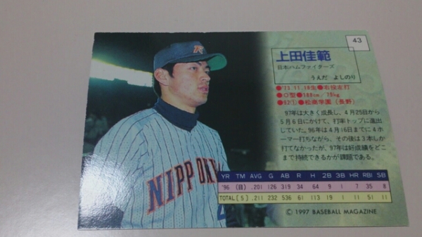 日本ハムファイターズ上田佳範!1997BBMダイヤモンドヒーローズ43元中日ドラゴンズ松商学園 |