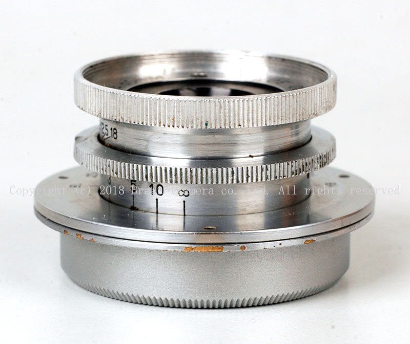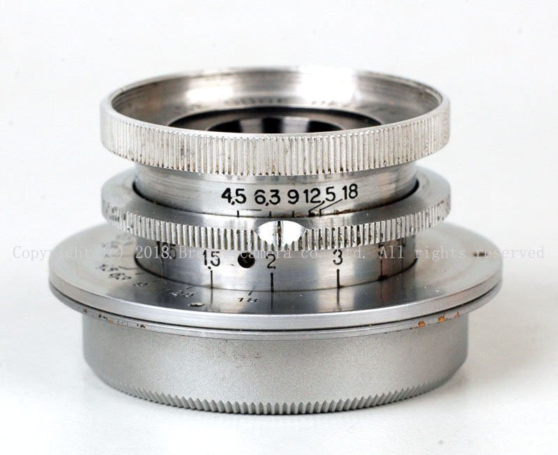 f3.5のほうがかなり独自の形状をしているのに対し、このf4.5はElmar35mmとも共通する形をしており、いかにも試作品らしい。