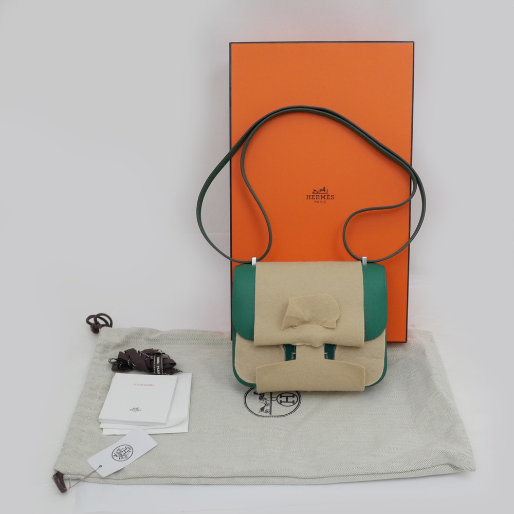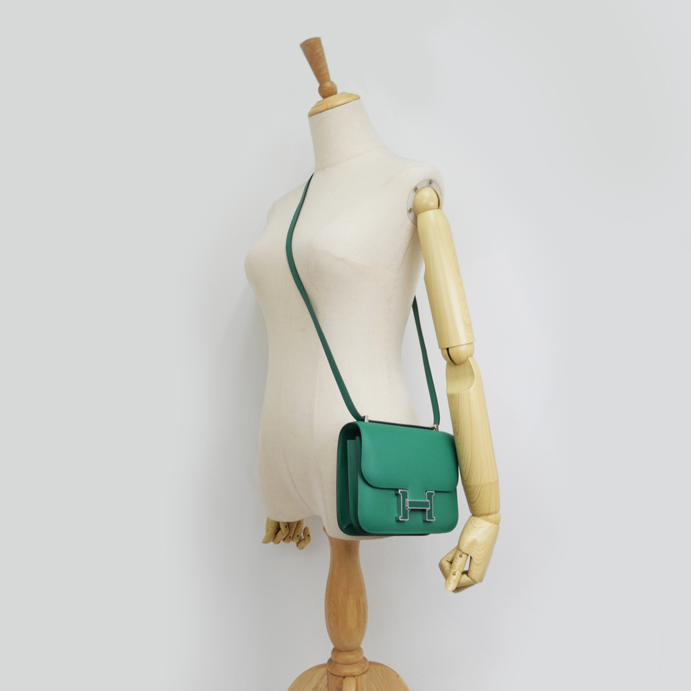 【名東】エルメス コンスタンスミニ ミロワール ヴェールモワイヤン ラッカー W刻 ショルダー バッグ グリーン 新品