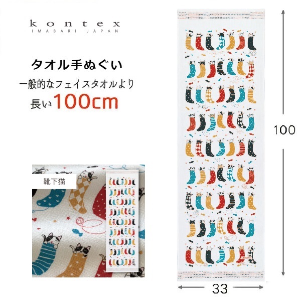 タオル手ぬぐい 布ごよみ 靴下猫 62180 kontex コンテックス てぬぐい タオル 吸水 速乾