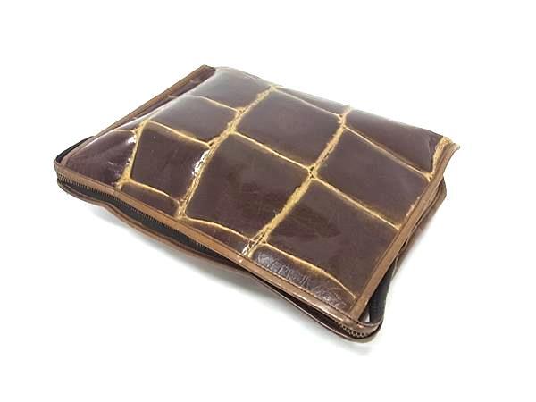 1円 CELINE セリーヌ ヴィンテージ クロコダイル型押しレザー クラッチバッグ セカンドバッグ レディース メンズ ブラウン系 FH9543