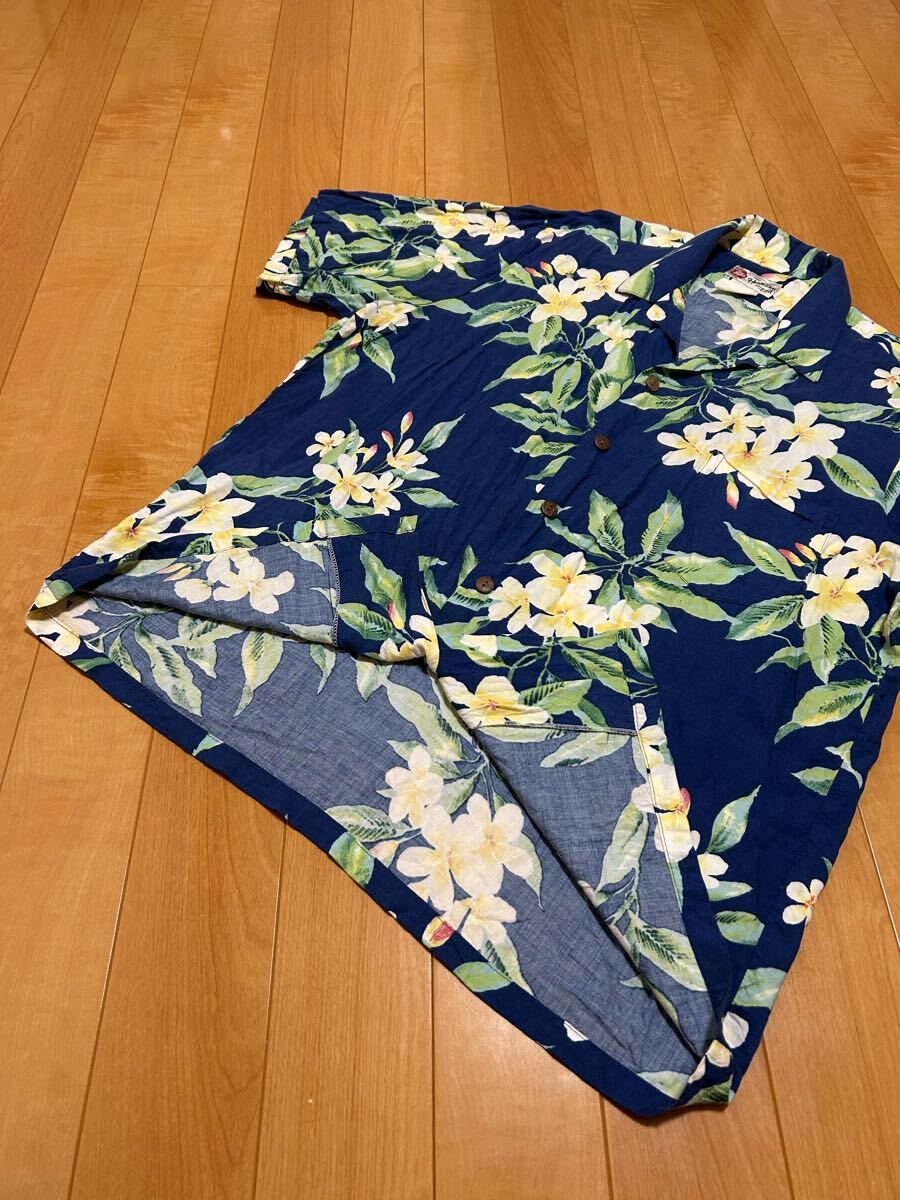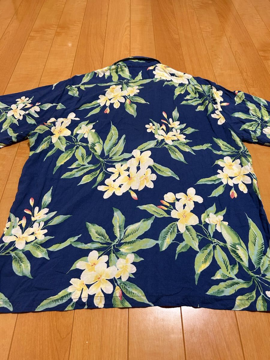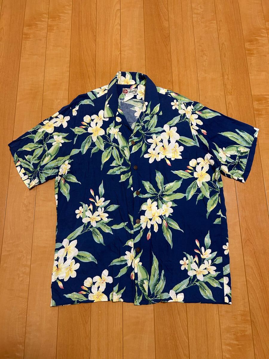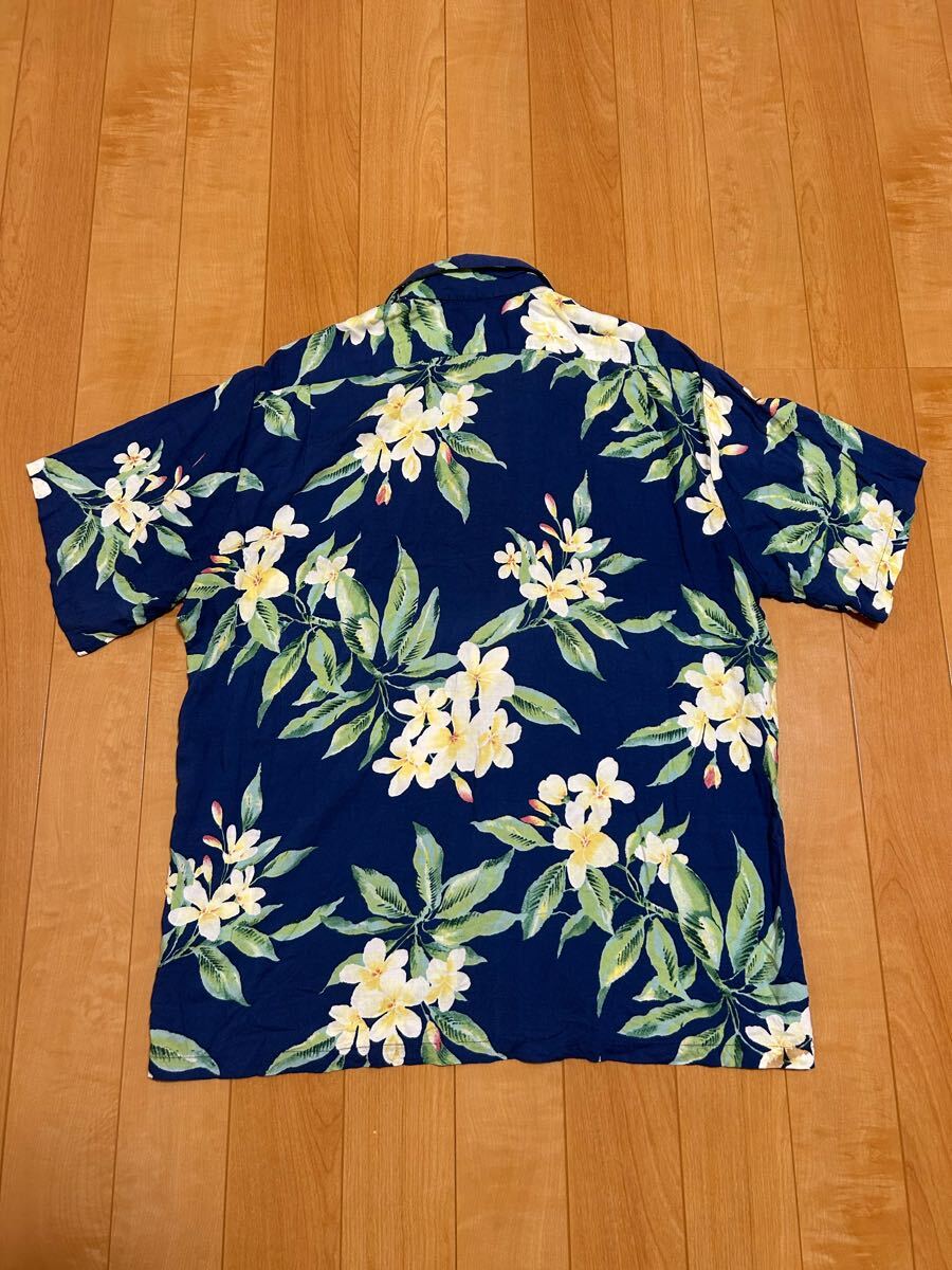 良品☆Hawaii.USA製/Hilo Hattie・メンズサイズXL大き目.日本2XL以上並 半袖希少.レーヨンアロハシャツ 花&葉っぱ総柄 ココナッツボタン!
