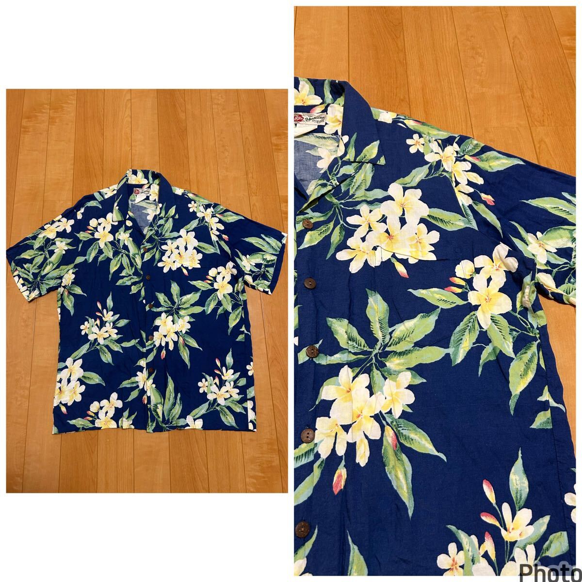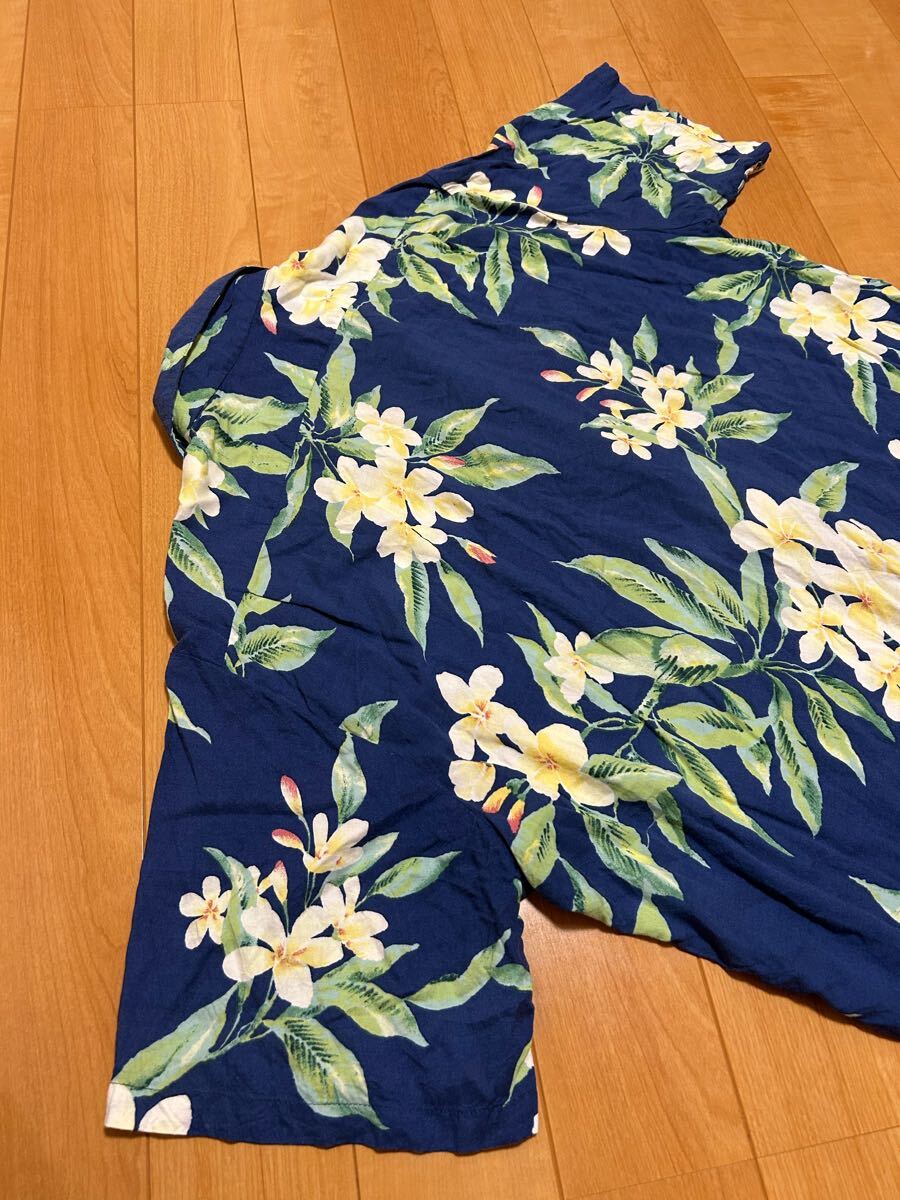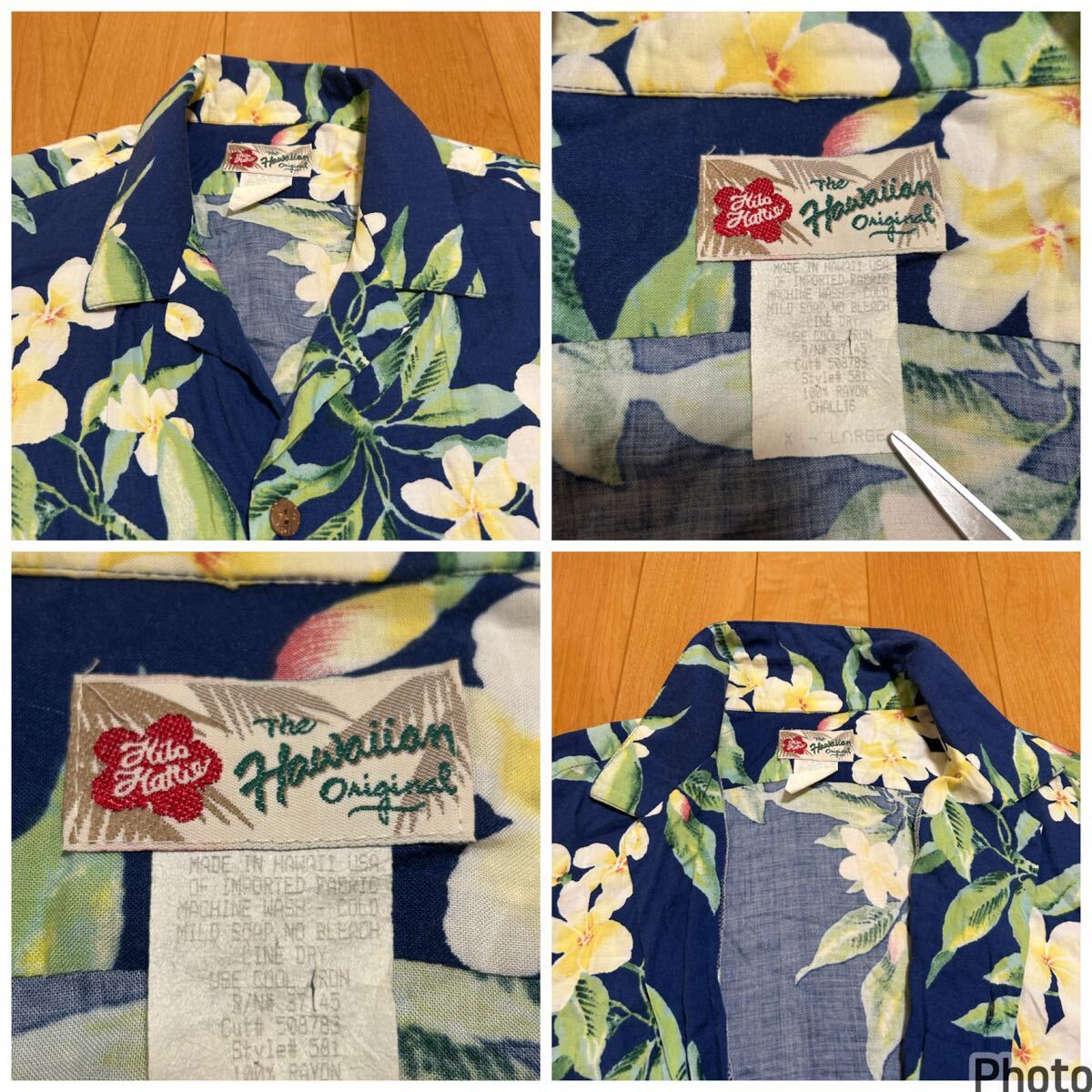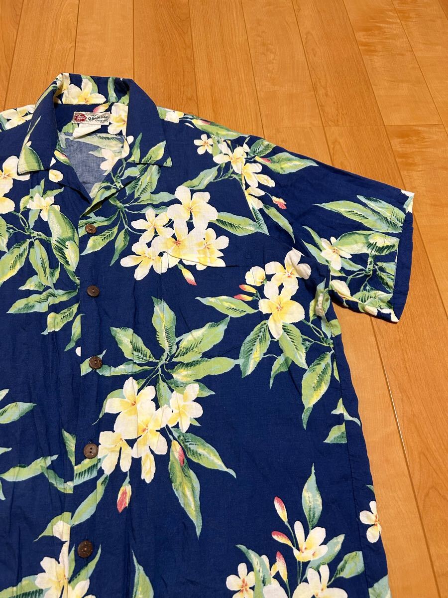 良品☆Hawaii.USA製/Hilo Hattie・メンズサイズXL大き目.日本2XL以上並 半袖希少.レーヨンアロハシャツ 花&葉っぱ総柄 ココナッツボタン!