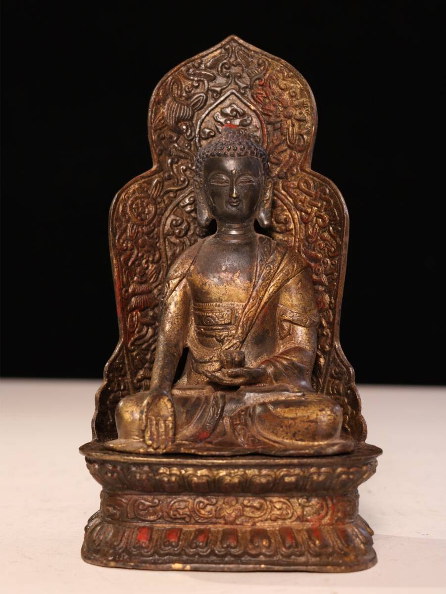 旧 清代 純銅 蒔絵 朱砂仏像【釈迦牟尼仏】 古家具 中国古美術 古賞物 古置物 唐物 S78