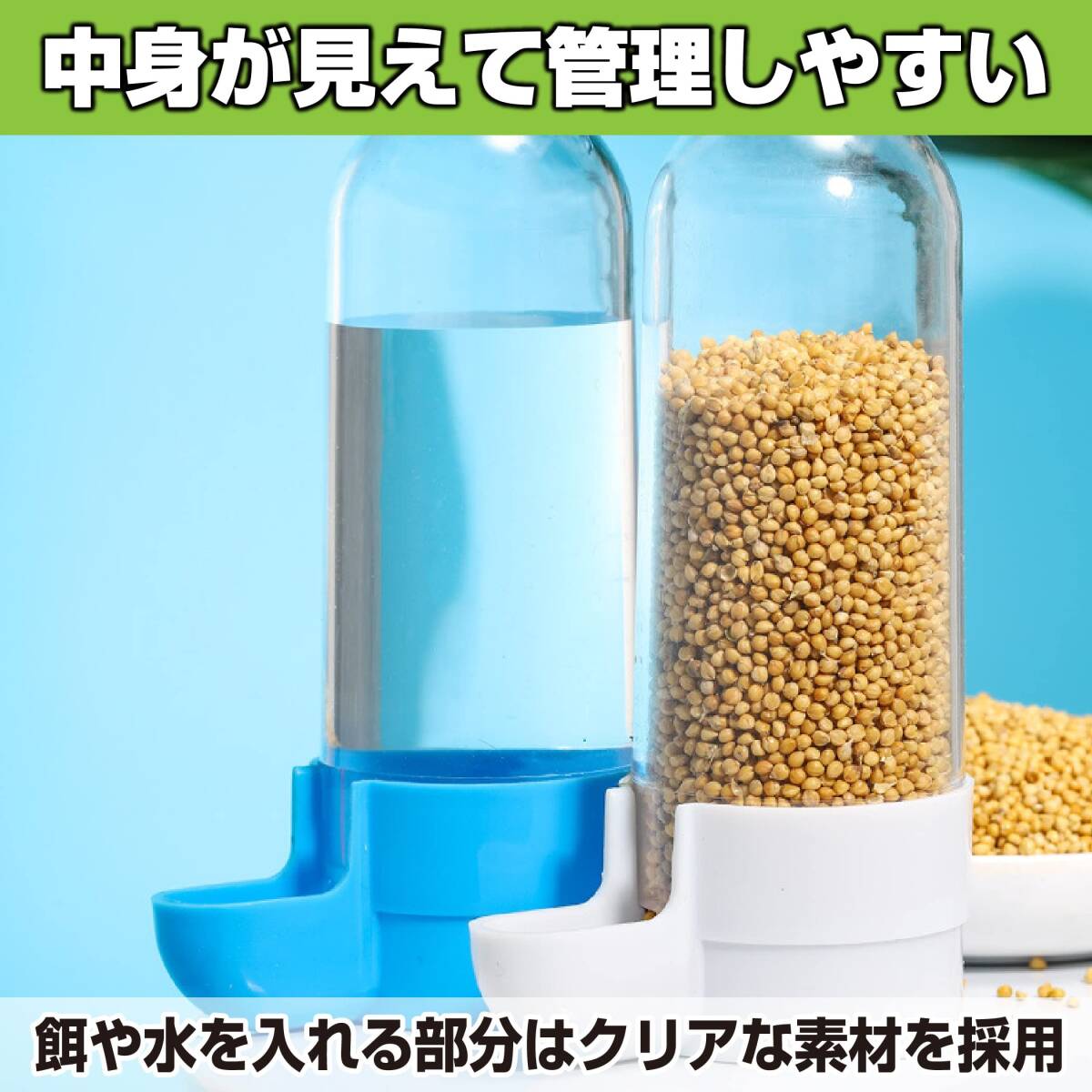 中身が見えて管理しやすい:餌や水を入れる部分はクリアな素材を採用しているので、中身が見やすく、残量管理もしやすいです。床置きもできますので、ハムスターなどの小動物にも適しています。