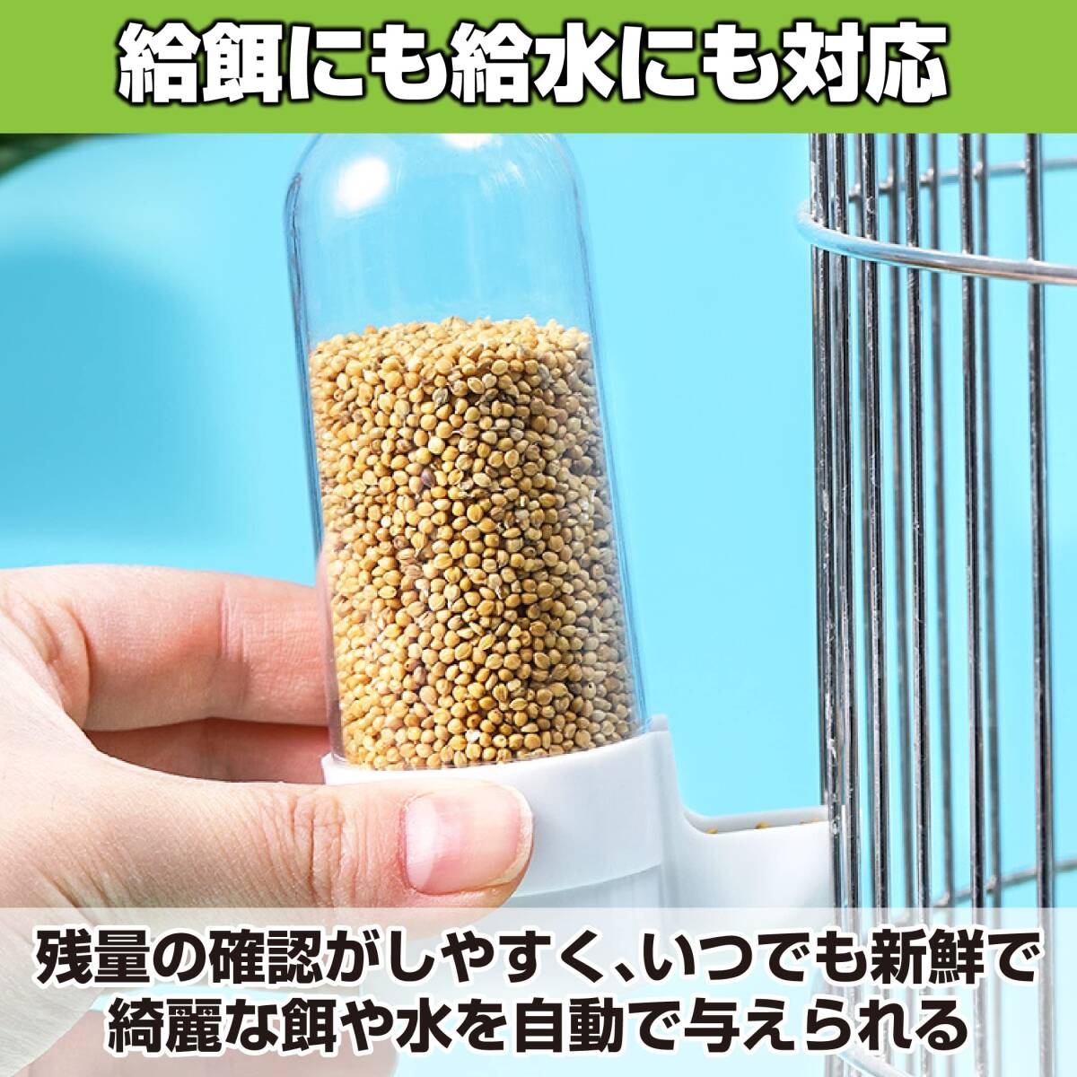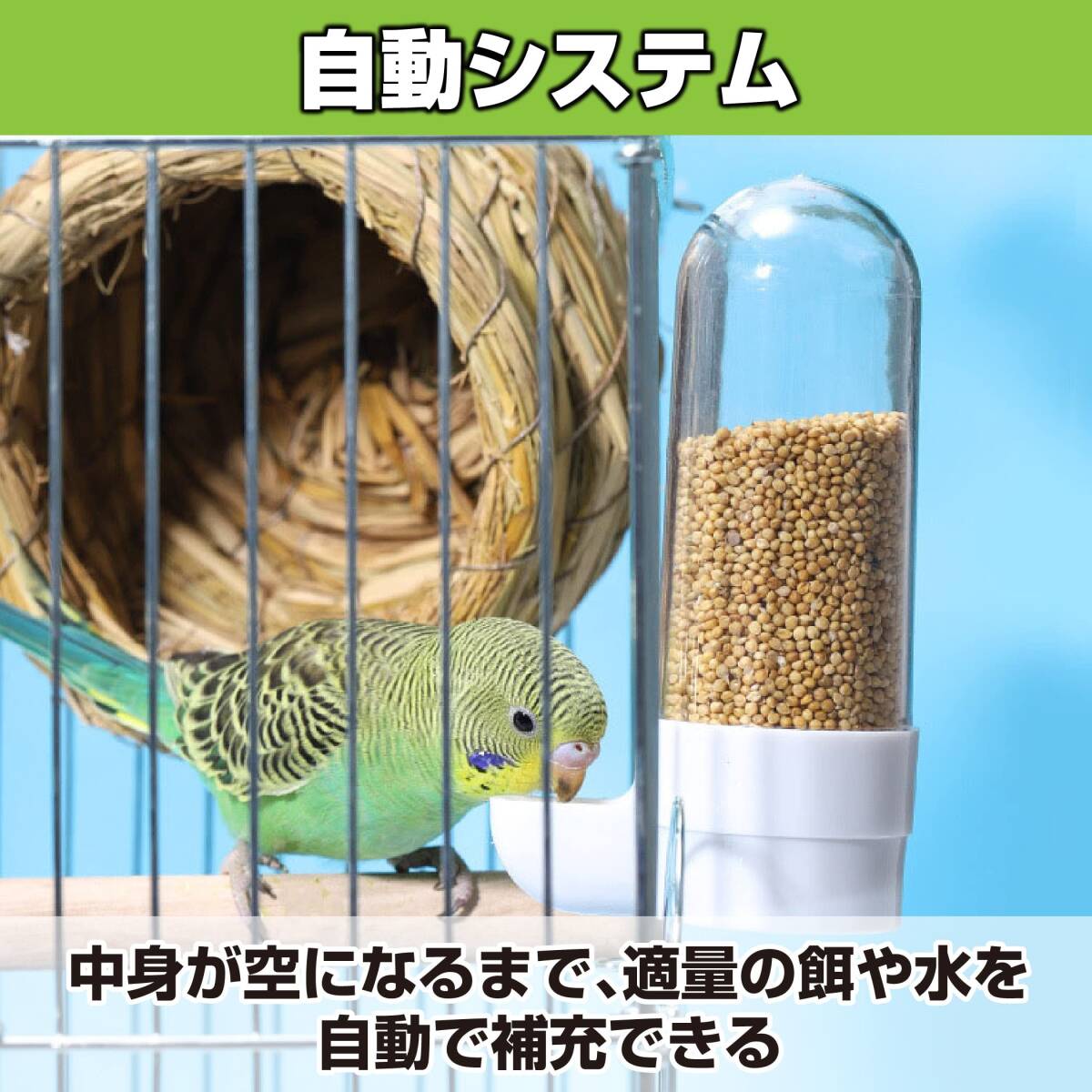多頭飼育の方にもおすすめのセット:複数のケージでインコ、オウムなどの小鳥や小動物を複数飼育している方にもおすすめのセットです。ケージに掛けて設置するタイプなので、少し高い位置に設置することも可能です。