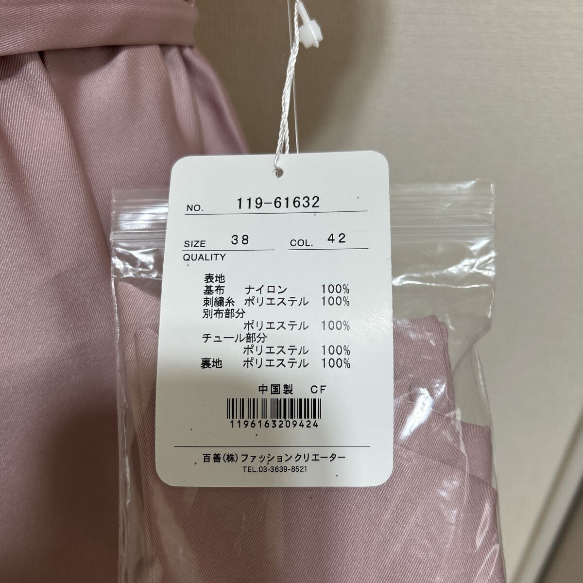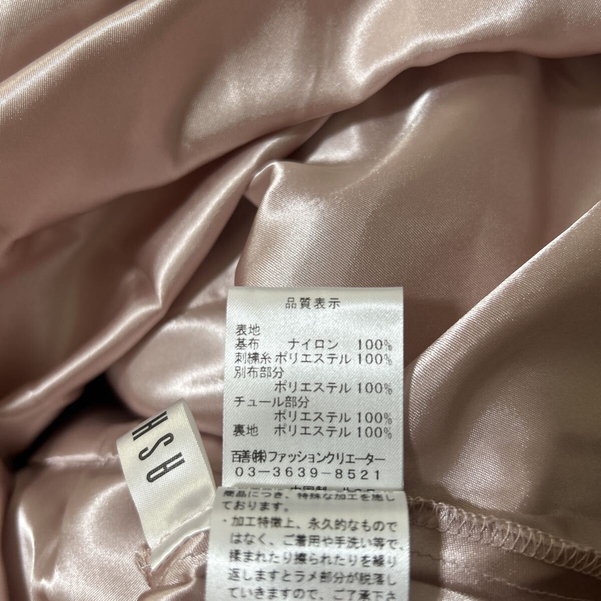 刺繍糸、別布部分、チュール部分、裏地ポリエステル100%