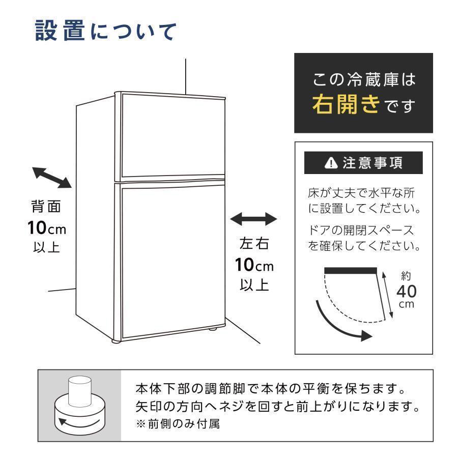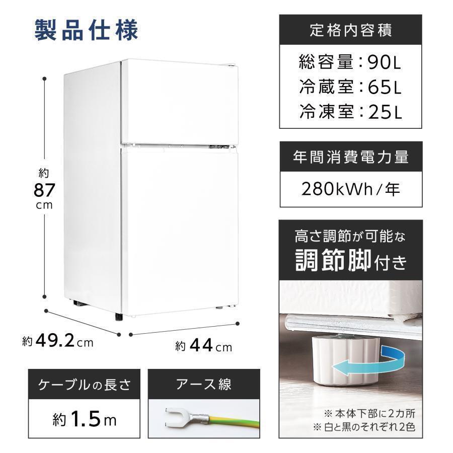 冷蔵庫 90リットル 右開き 左開き 左右開き対応 冷凍冷蔵庫 一人暮らし 小型 2ドア 省エネ コンパクト ホワイト ブラック
