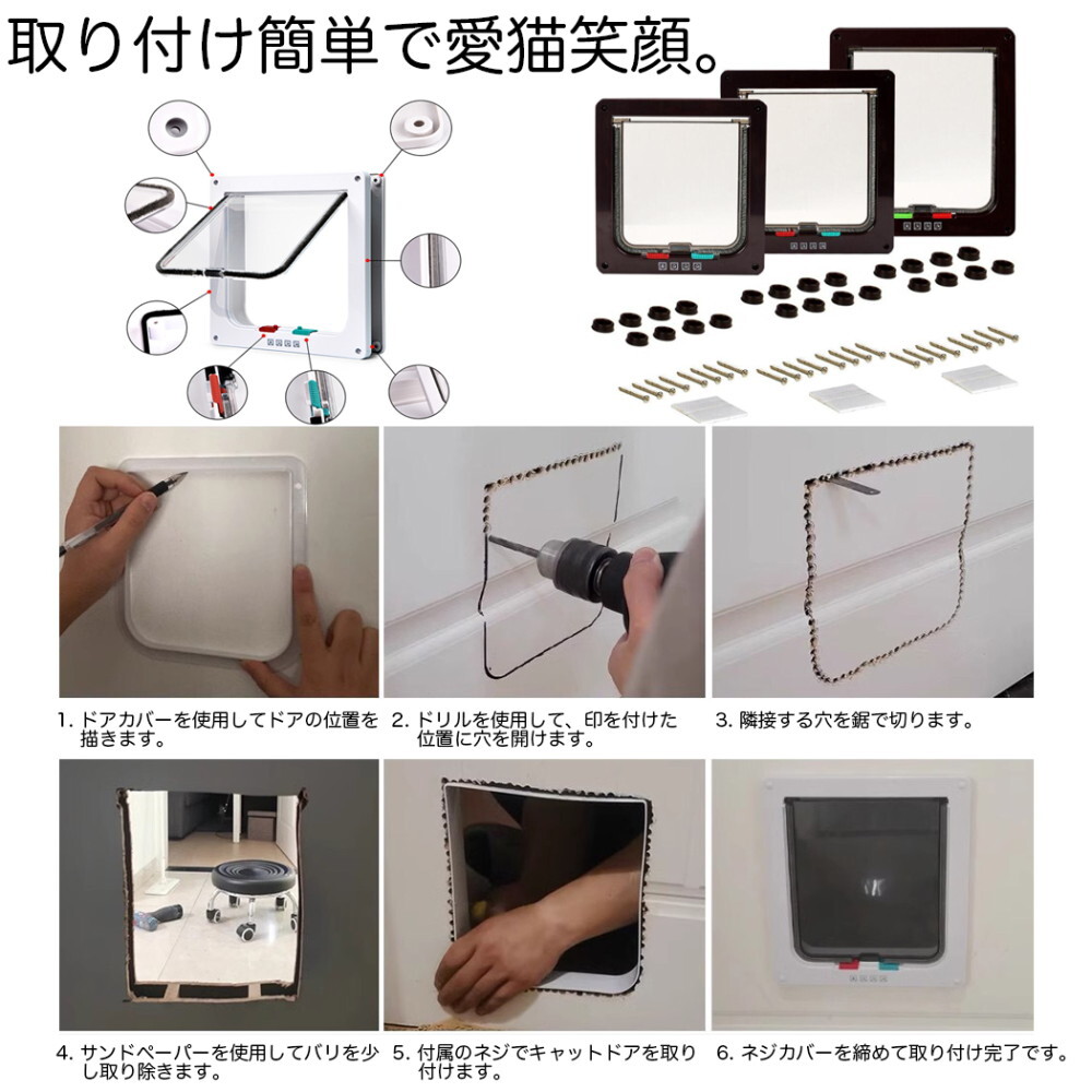 ペット ドア ゲート 出入り口 犬 猫 取り付け簡単 冷暖房対策 勝手口 扉(M) ブラウン